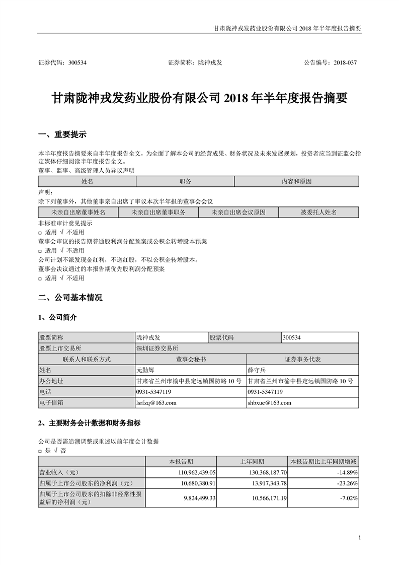 2018 年半年度報(bào)告摘要