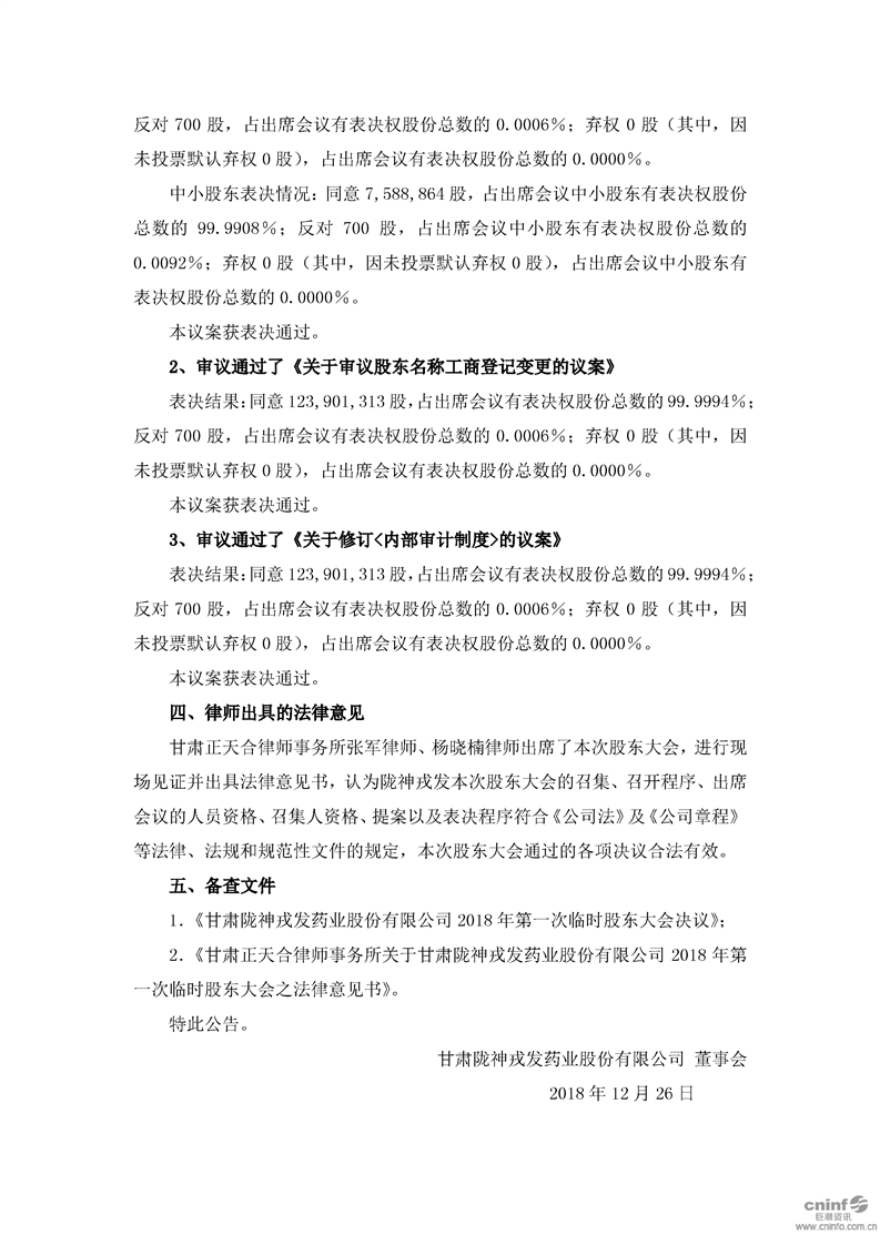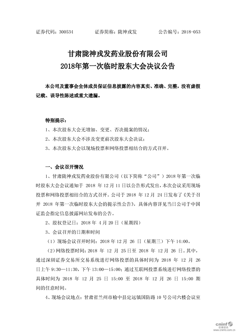 2018年第一次臨時(shí)股東大會(huì)決議公告