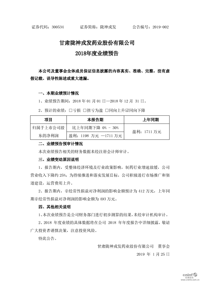 2018年度業(yè)績(jī)預(yù)告