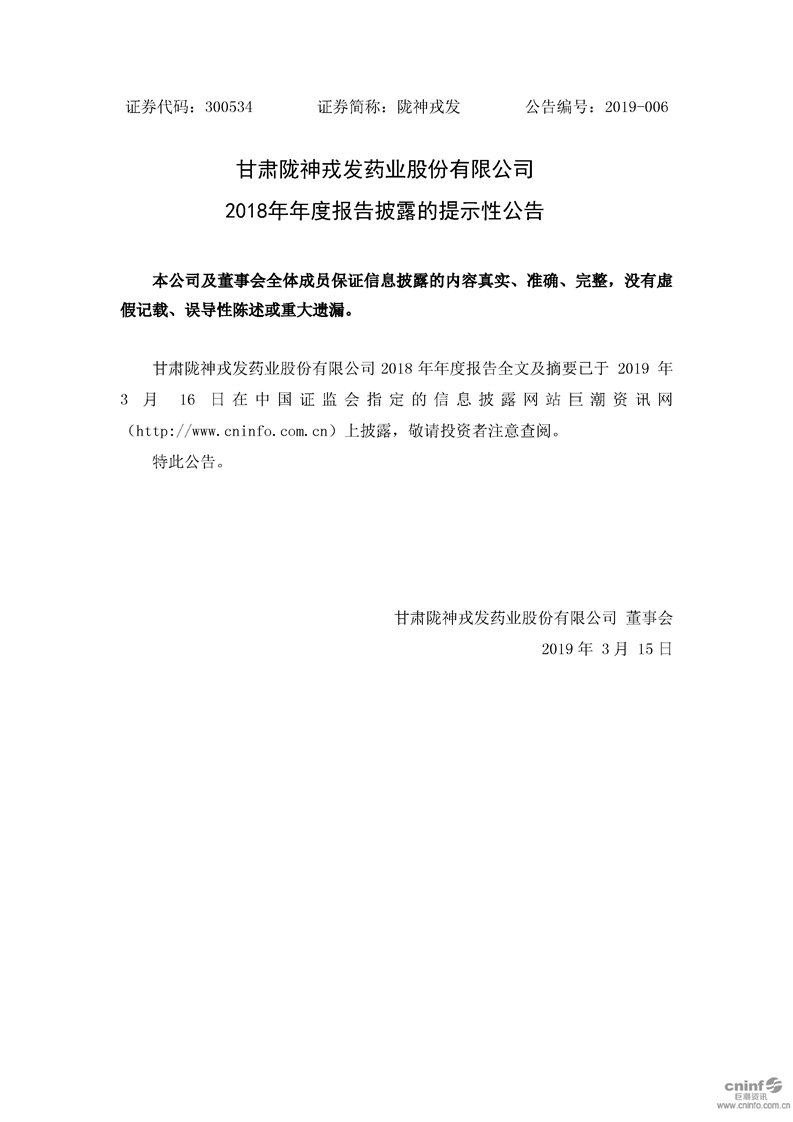 2018年年度報(bào)告披露的提示性公告
