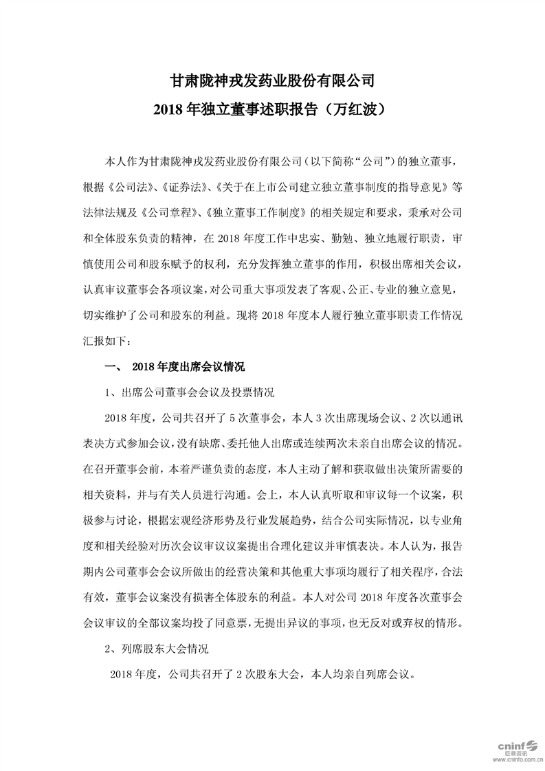 2018 年度獨(dú)立董事述職報(bào)告(萬紅波)