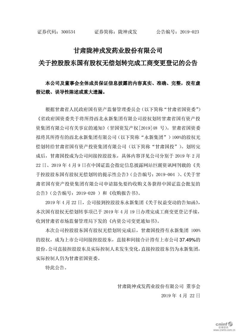 關于控股股東國有股權無償劃轉(zhuǎn)完成工商變更登記的公告