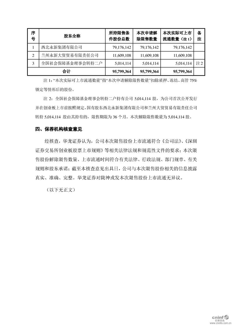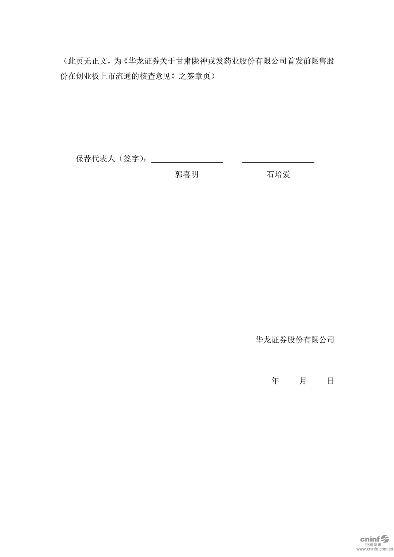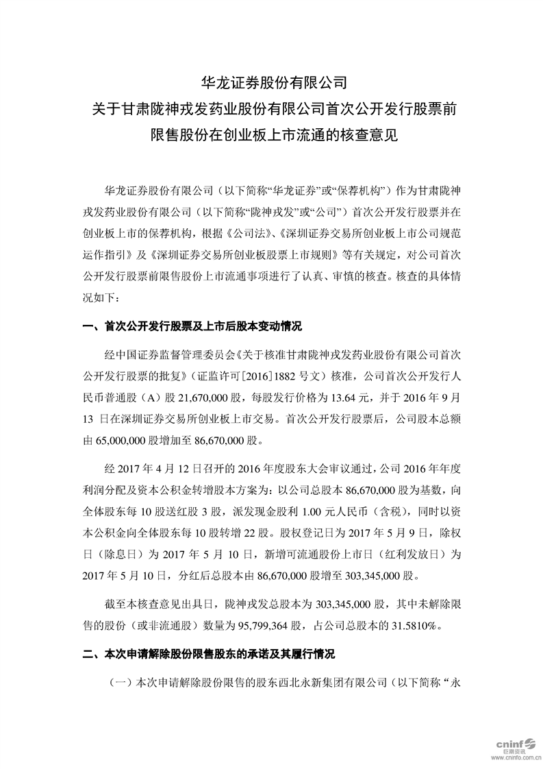 華龍證券股份有限公司關(guān)于公司首次公開(kāi)發(fā)行股票前限售股份在創(chuàng)業(yè)板上市流通的核查意見(jiàn)