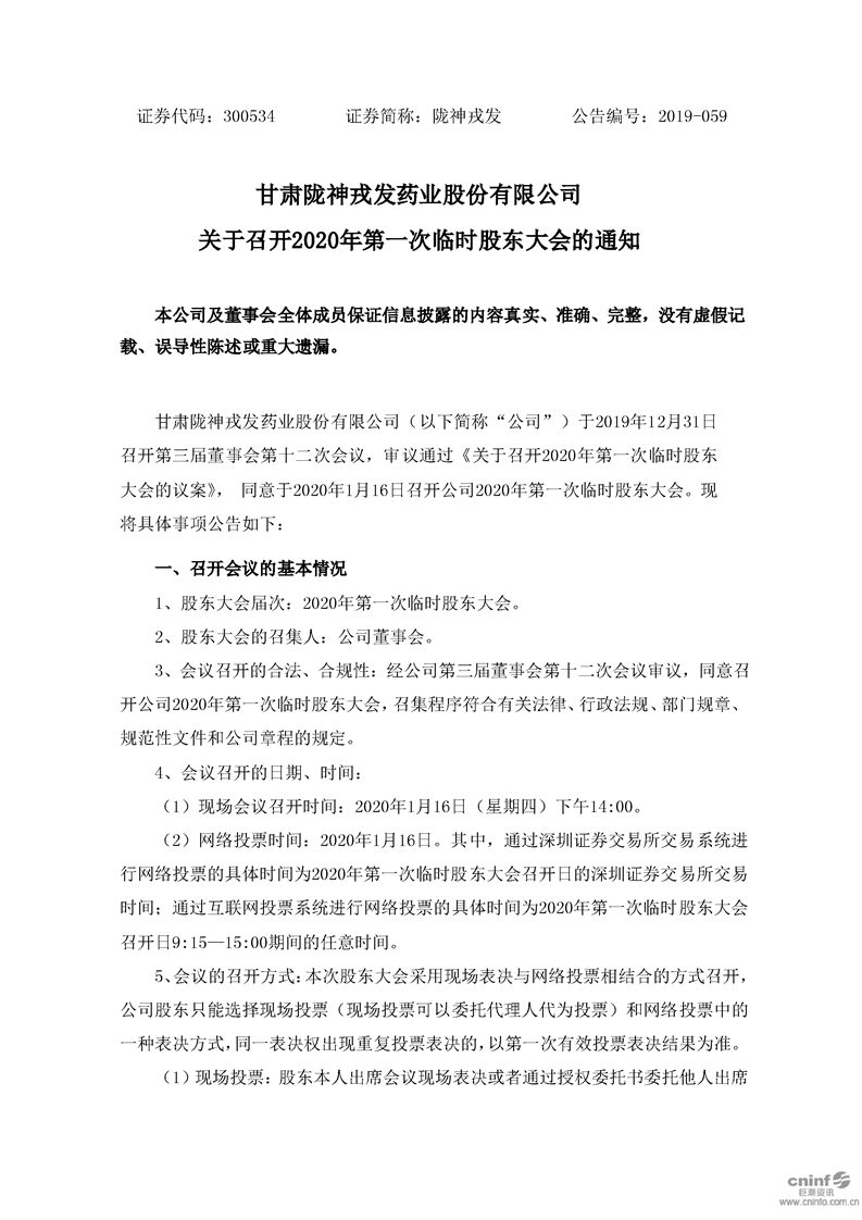 關(guān)于召開2020年第一次臨時(shí)股東大會的通知