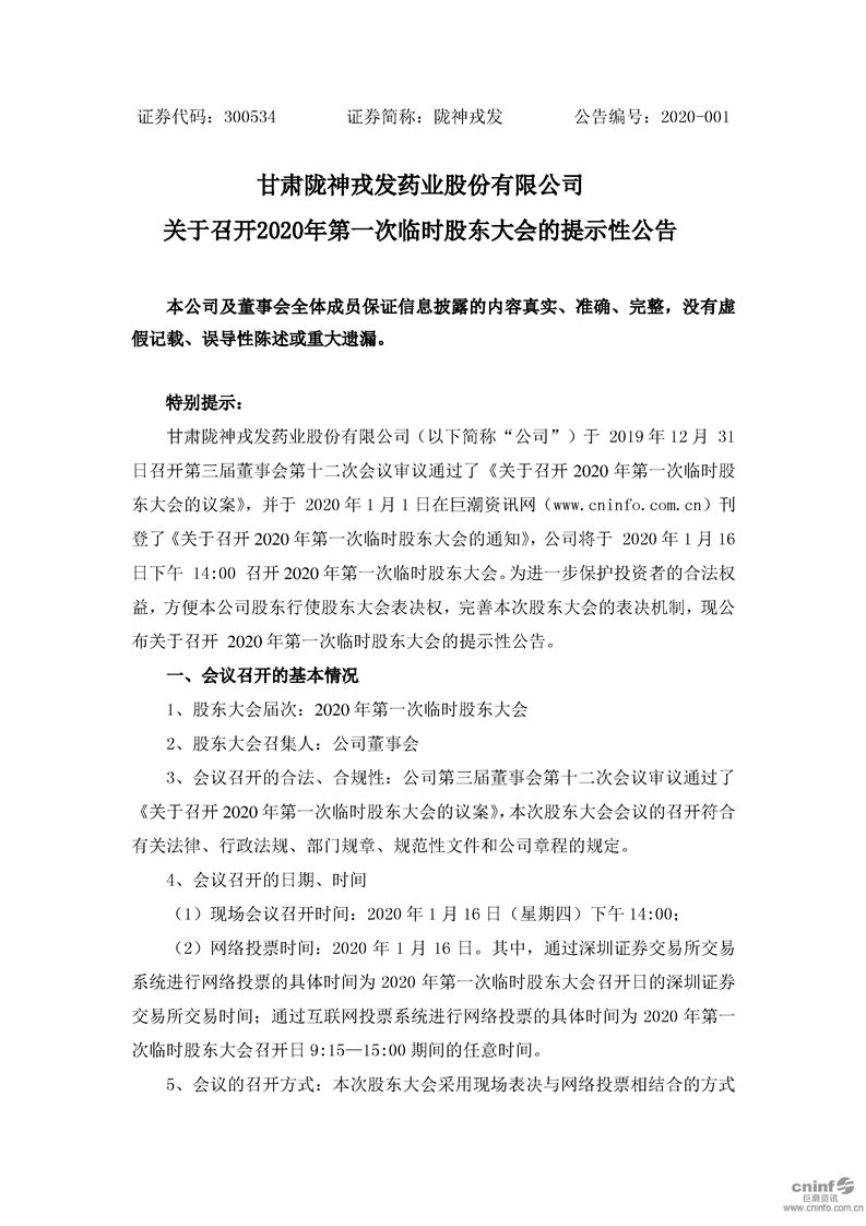 關(guān)于召開(kāi)2020年第一次臨時(shí)股東大會(huì)的提示性公告