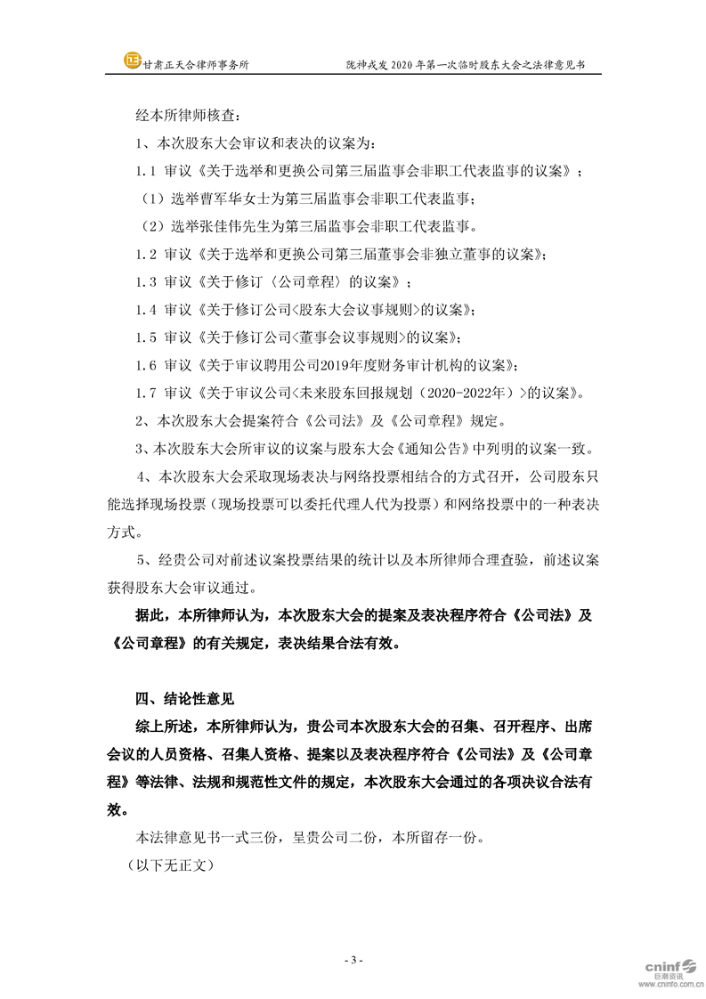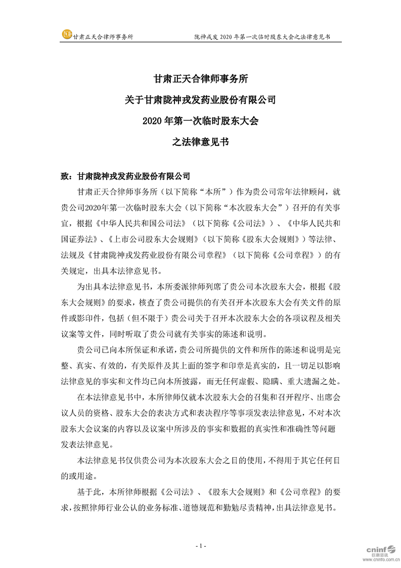 2020年第一次臨時(shí)股東大會(huì)之法律意見書