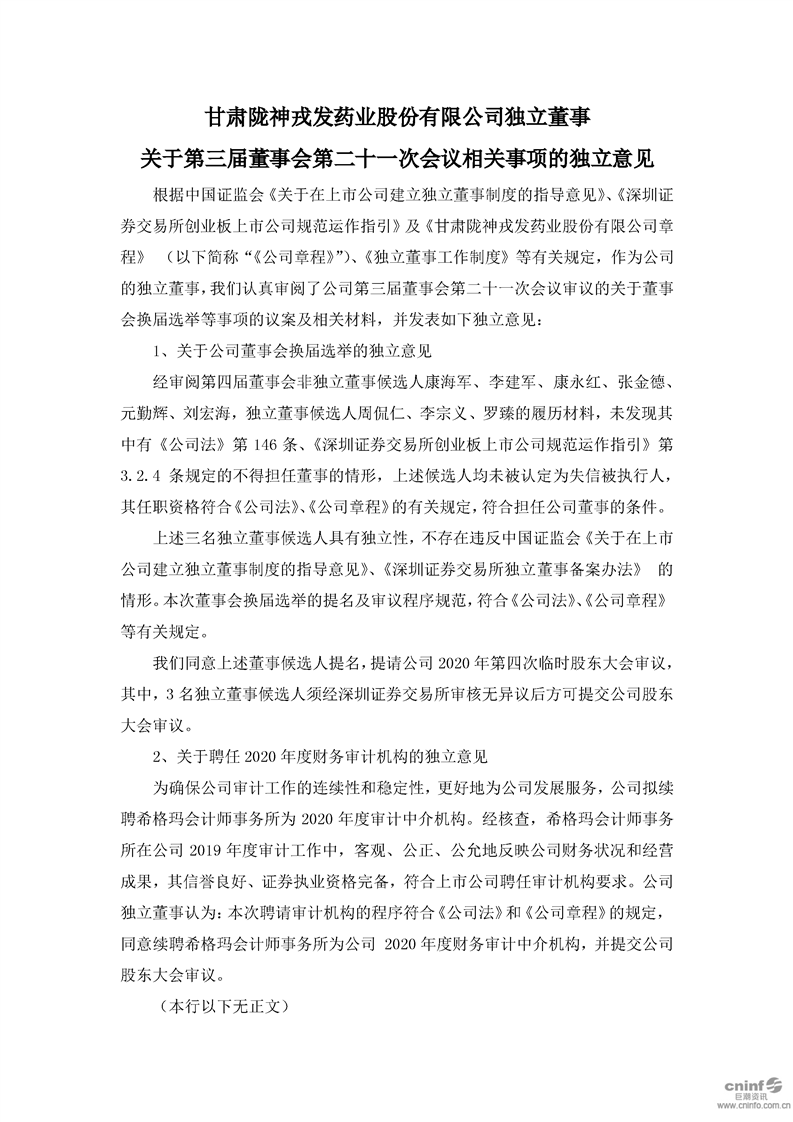 獨(dú)立董事關(guān)于第三屆董事會第二十一次會議相關(guān)事項(xiàng)的獨(dú)立意見