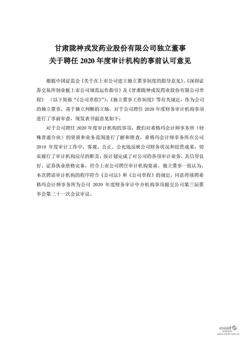 獨立董事關(guān)于聘任2020年度審計機構(gòu)的事前認可意見