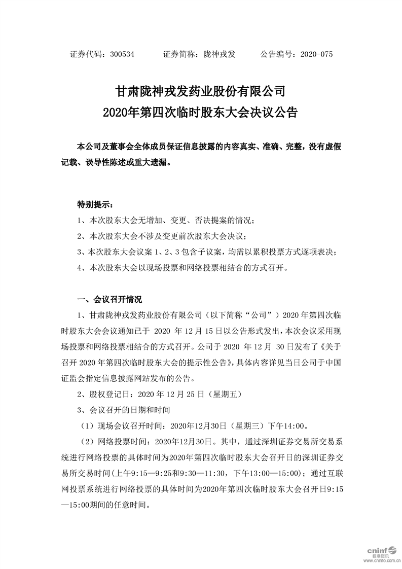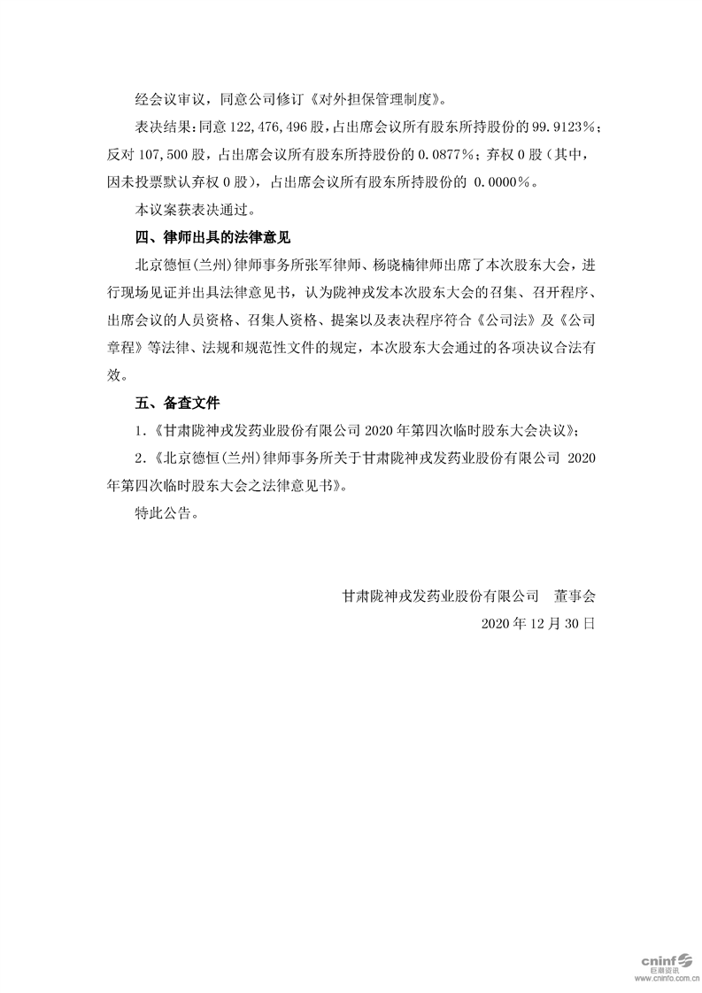 2020年第四次臨時(shí)股東大會(huì)決議公告