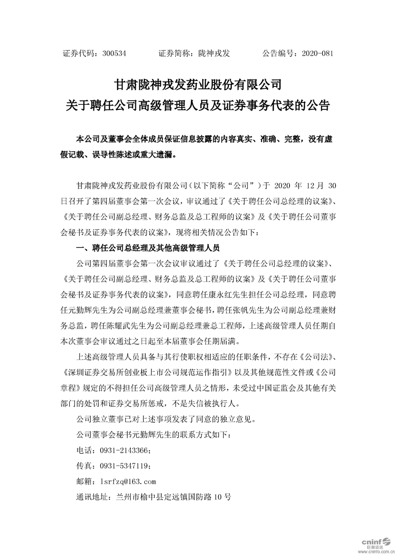 關(guān)于聘任公司高級(jí)管理人員及證券事務(wù)代表的公告