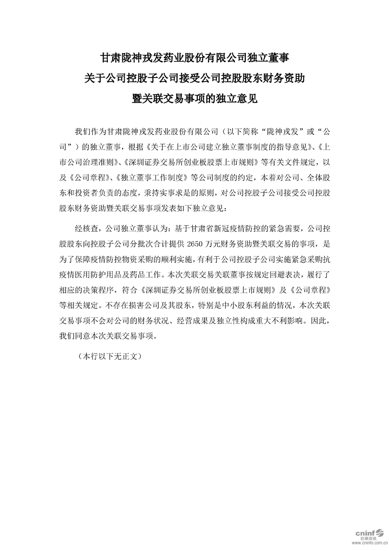 獨立董事關(guān)于公司控股子公司接受公司控股股東財務(wù)資助暨關(guān)聯(lián)交易事項的獨立意見