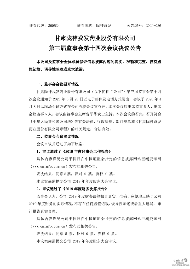 第三屆監(jiān)事會(huì)第十四次會(huì)議決議公告