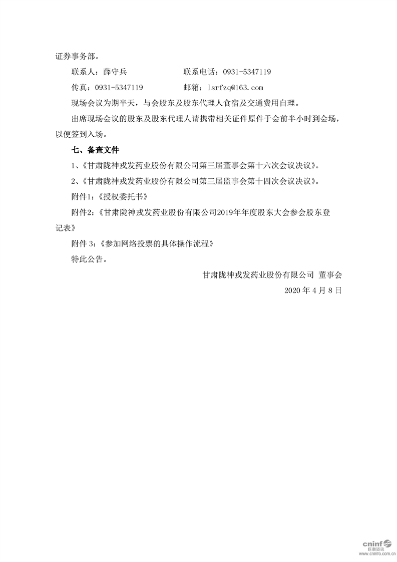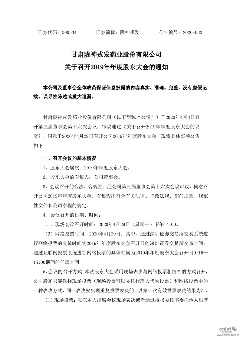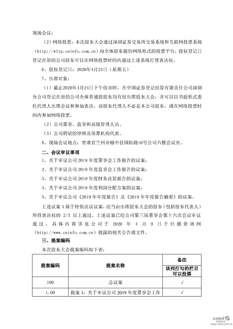 關(guān)于召開2019年年度股東大會的通知