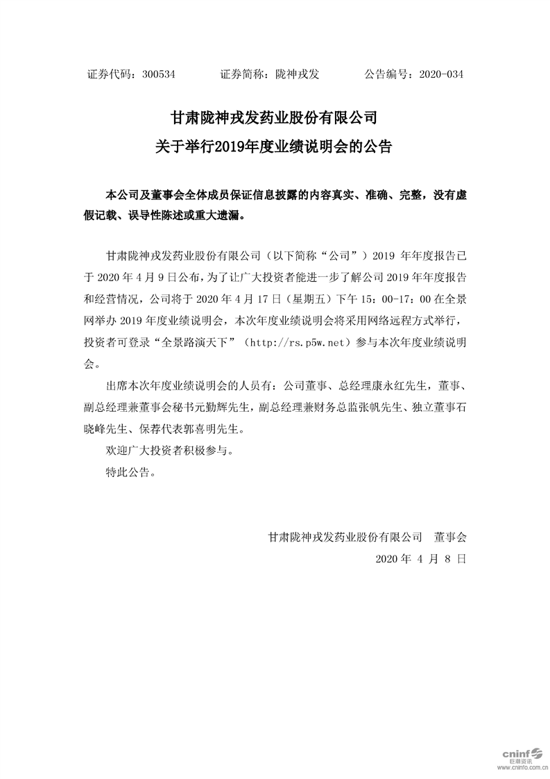 關(guān)于舉行2019年度業(yè)績(jī)說(shuō)明會(huì)的公告