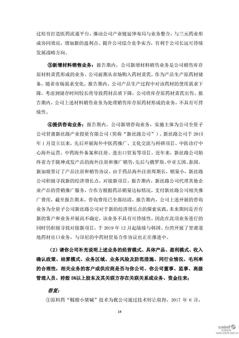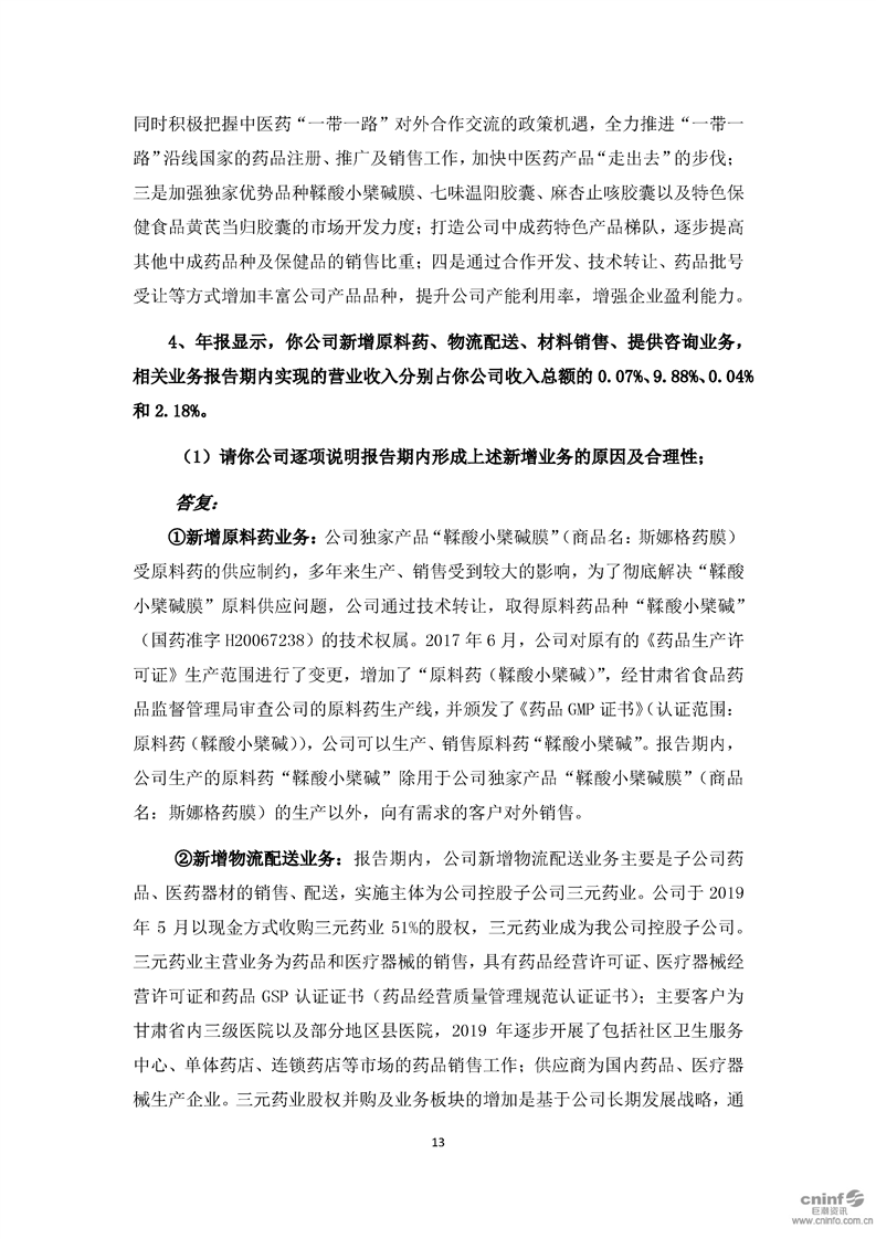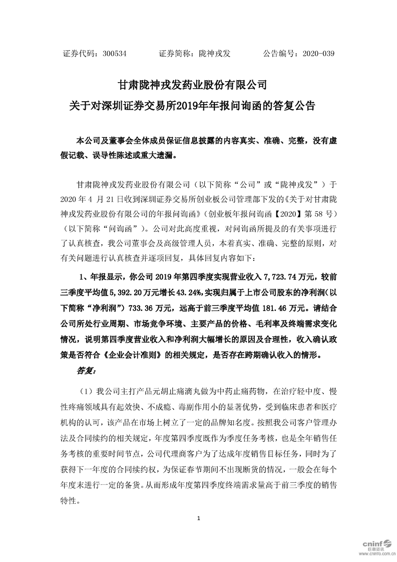 關(guān)于對深圳證券交易所2019年年報問詢函的答復(fù)公告