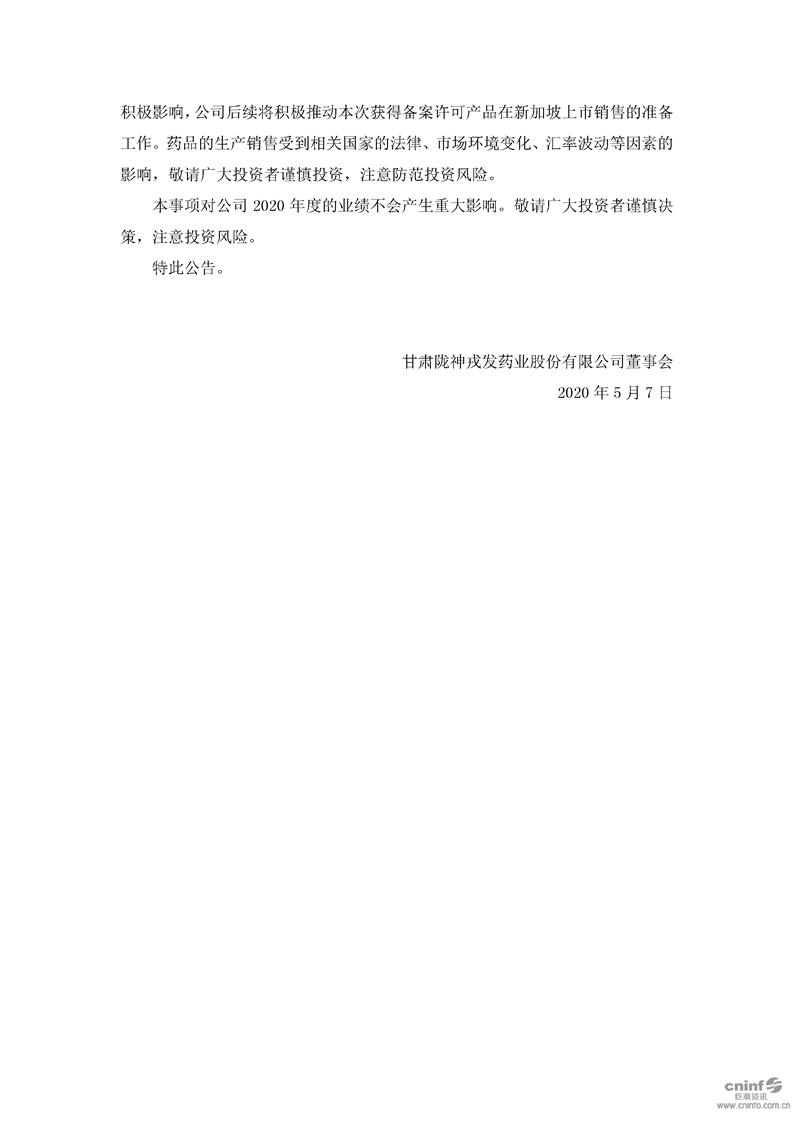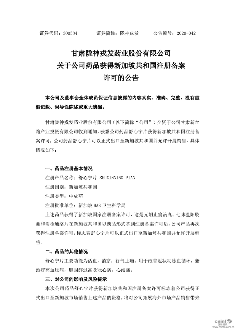關(guān)于公司藥品獲得新加坡共和國注冊備案許可的公告