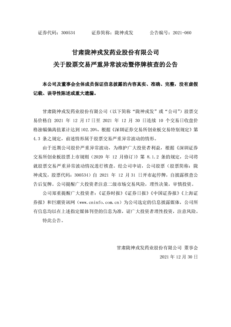 關(guān)于股票交易嚴(yán)重異常波動(dòng)暨停牌核查的公告