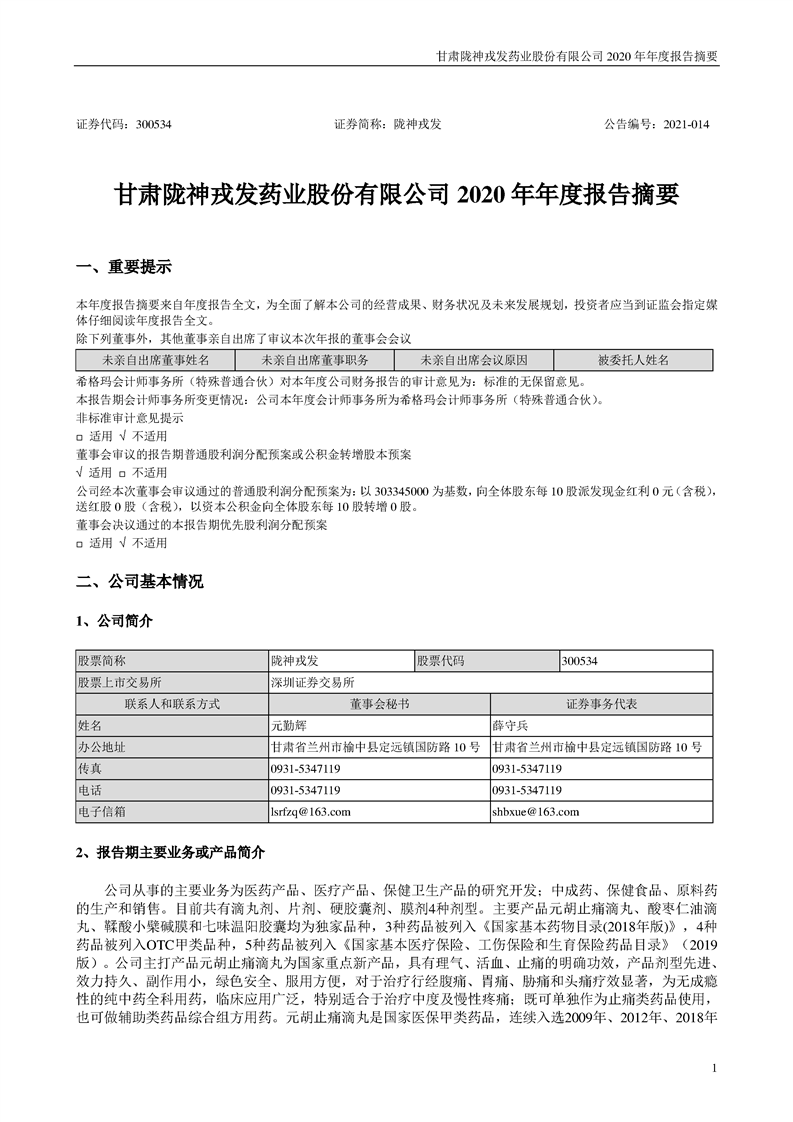 2020年年度報(bào)告摘要