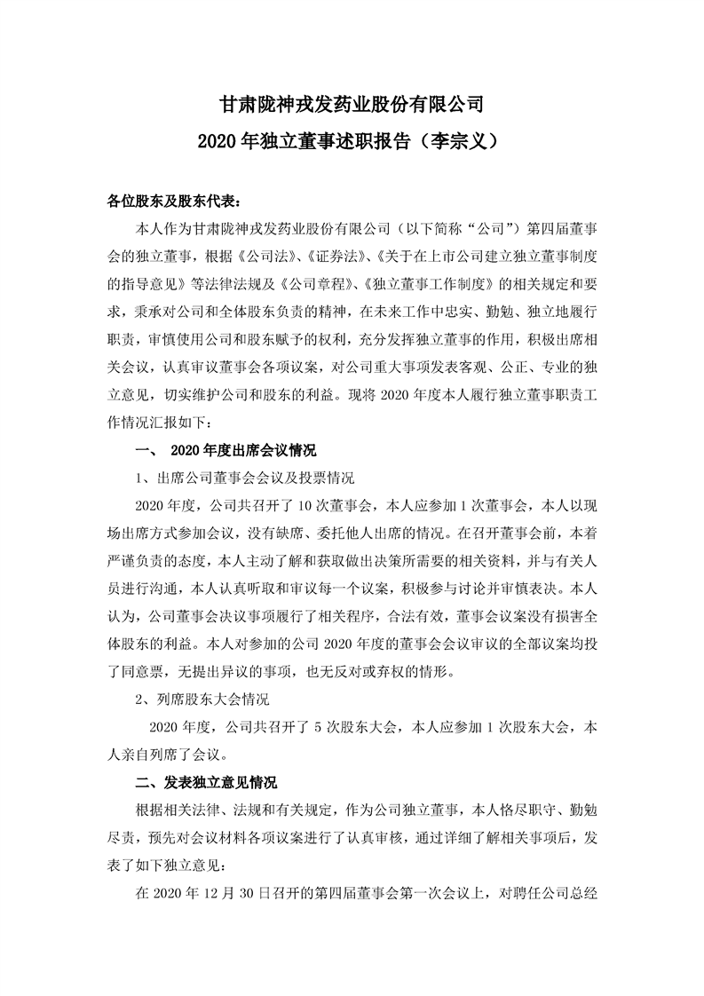 2020年獨(dú)立董事述職報(bào)告(李宗義)