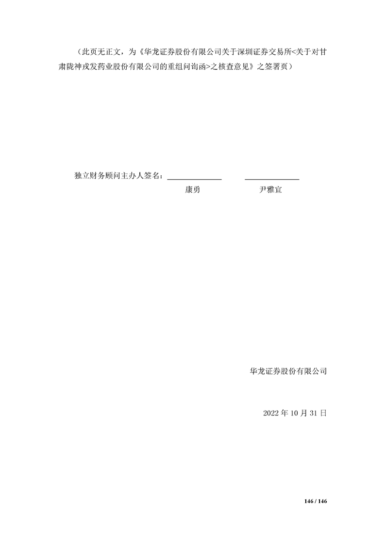 華龍證券股份有限公司關于深圳證券交易所《關于對甘肅隴神戎發(fā)藥業(yè)股份有限公司的重組問詢函》之核查意見