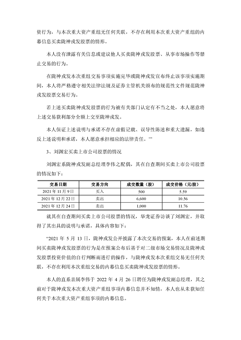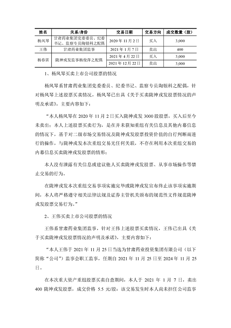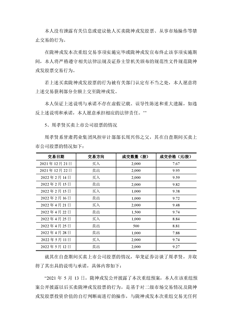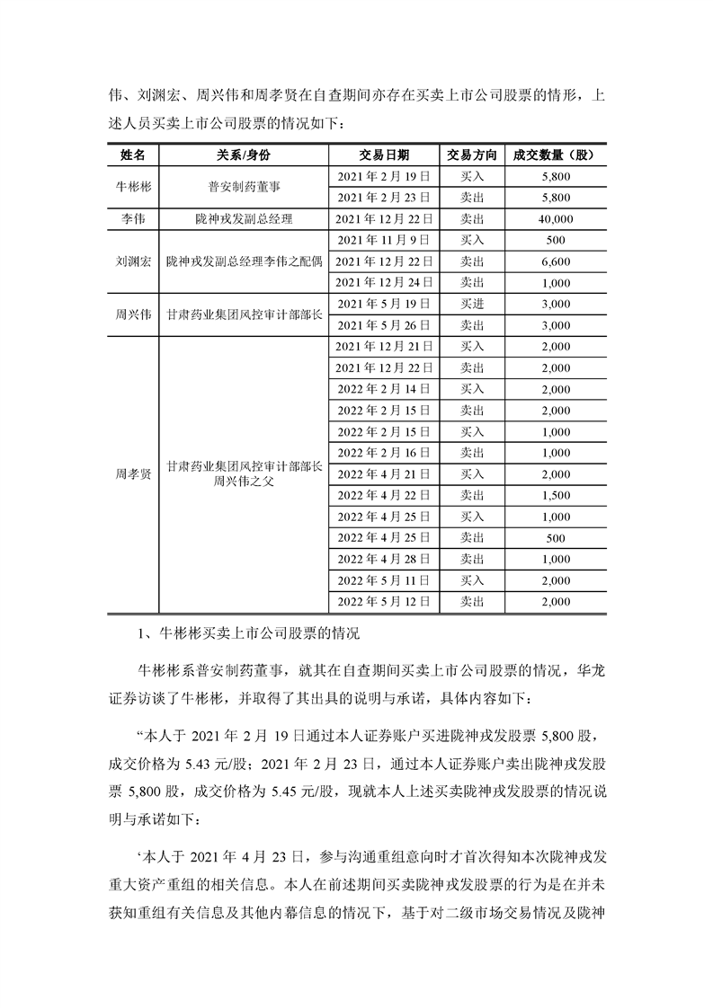 華龍證券股份有限公司關(guān)于甘肅隴神戎發(fā)藥業(yè)股份有限公司本次交易相關(guān)內(nèi)幕信息知情人買賣股票的自查報告之核查意見