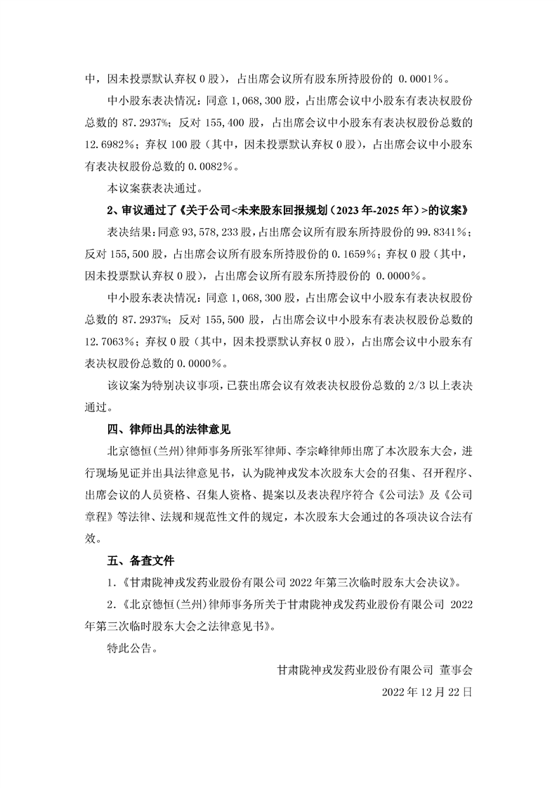 2022年第三次臨時股東大會決議公告