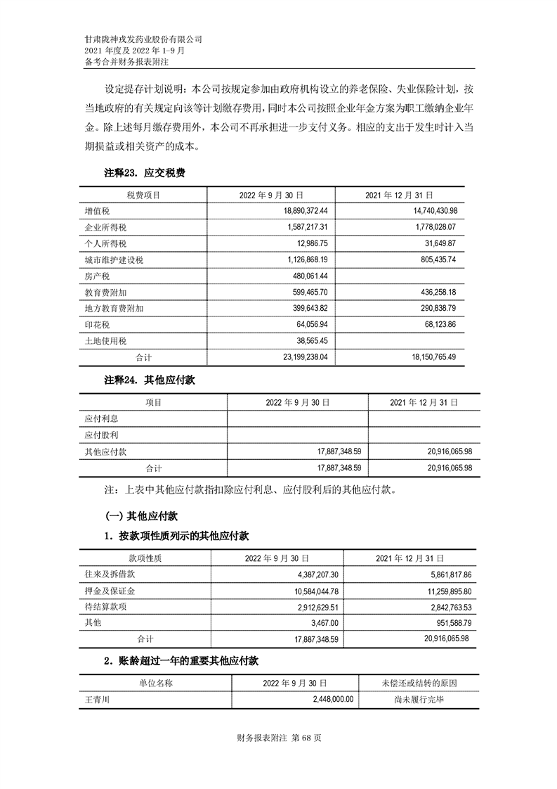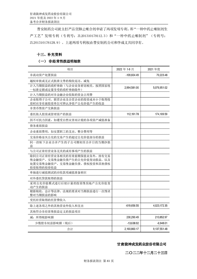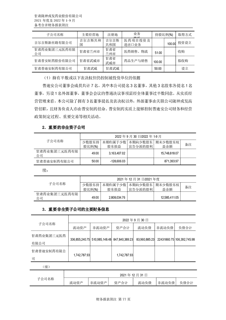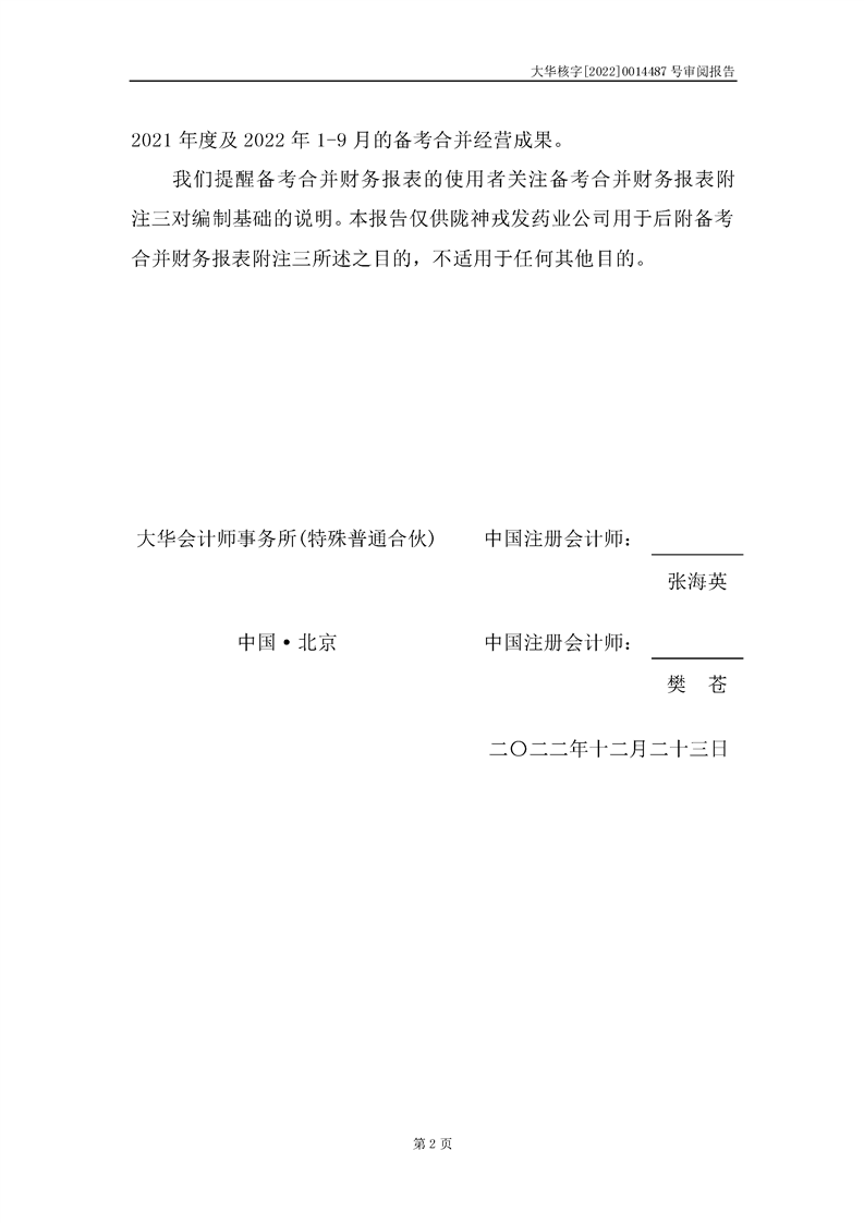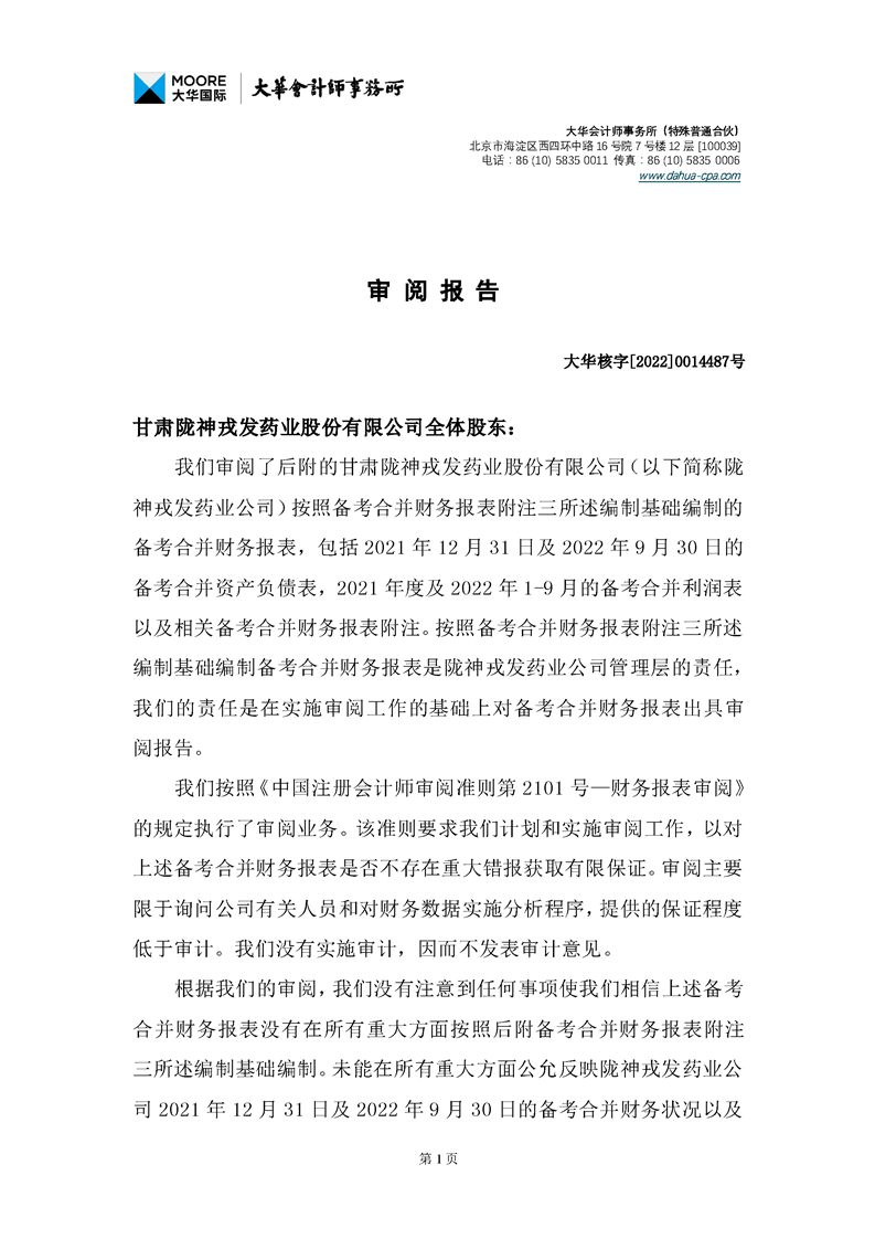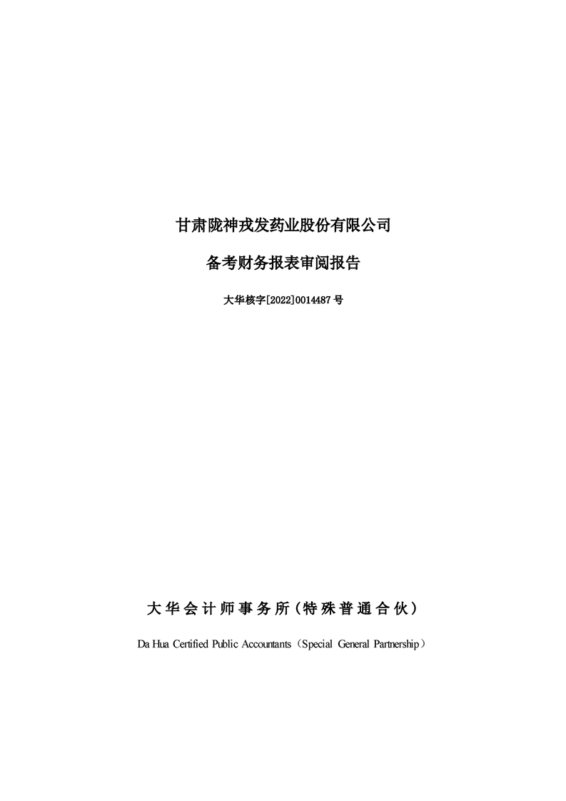 甘肅隴神戎發(fā)藥業(yè)股份有限公司備考財務(wù)報表審閱報告-大華核字[2022]0014487號