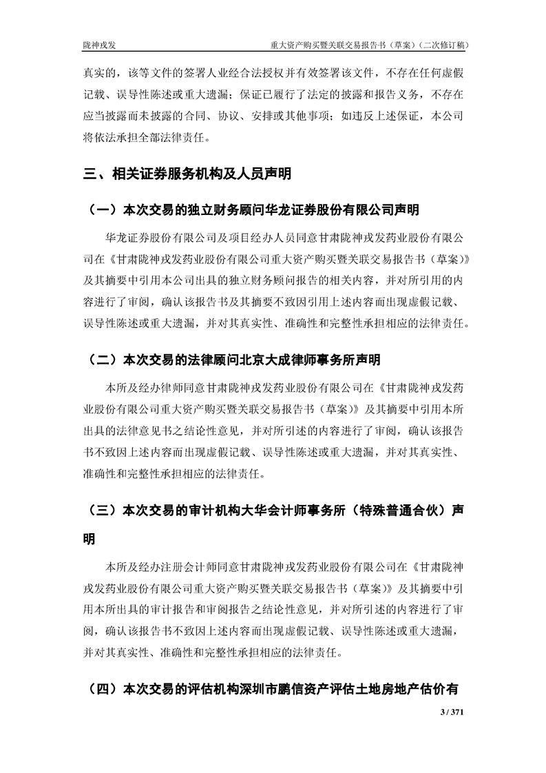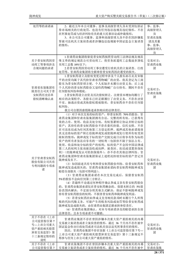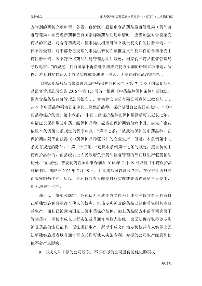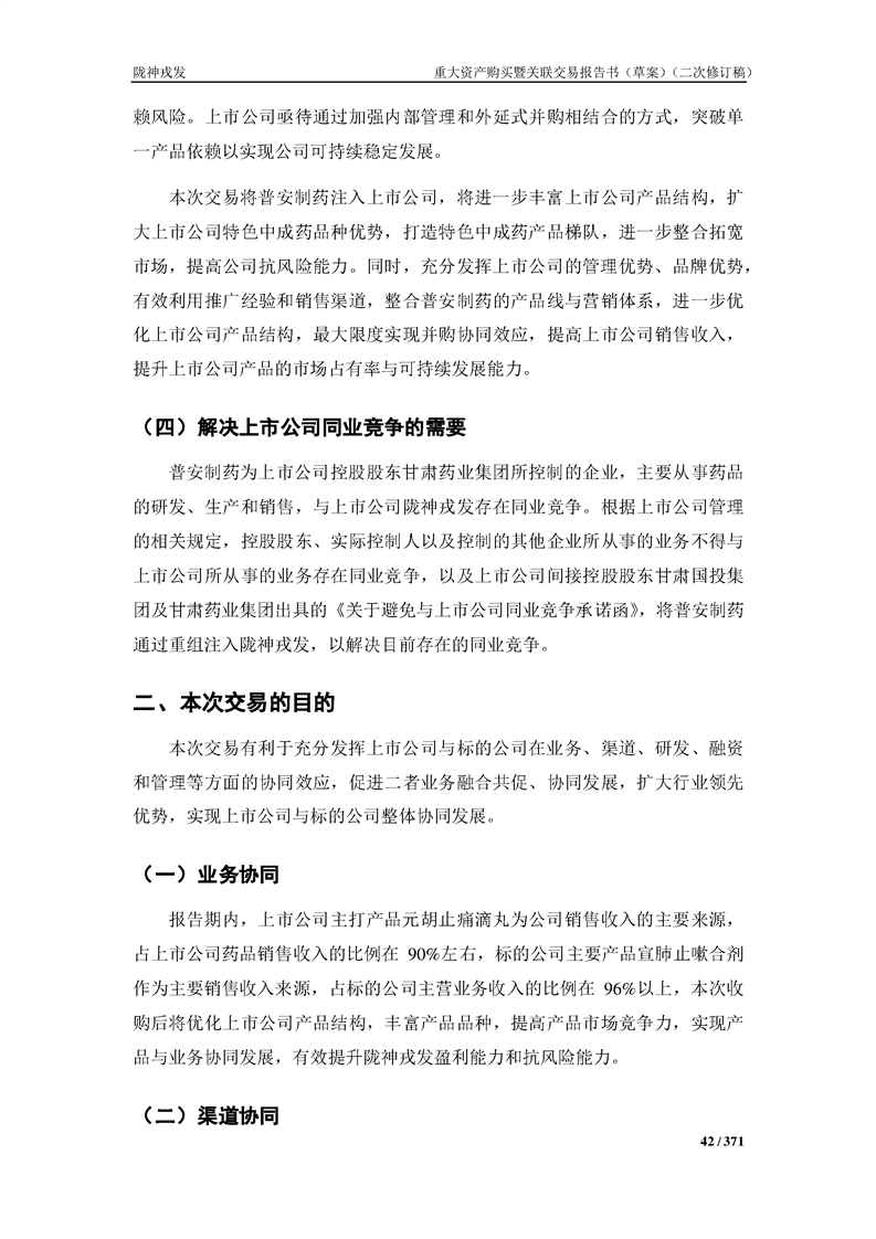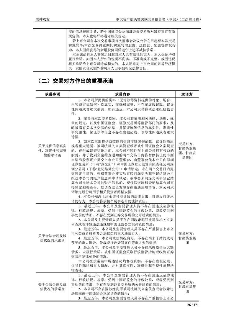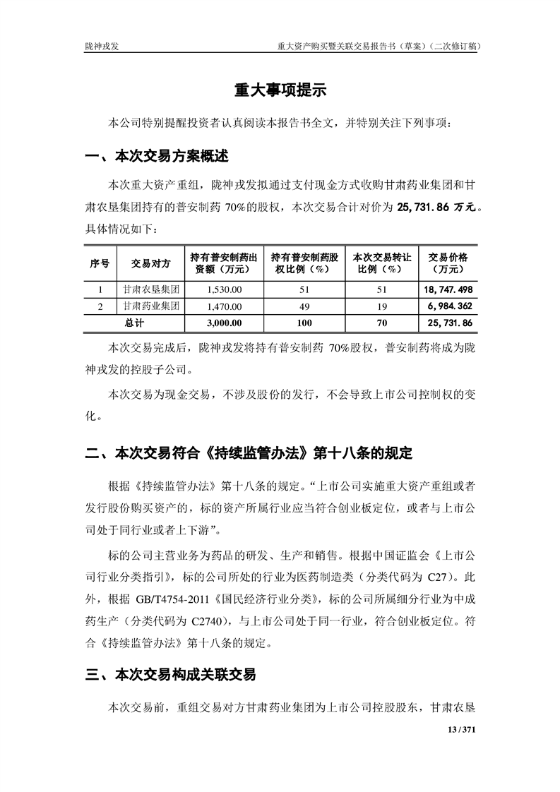 甘肅隴神戎發(fā)藥業(yè)股份有限公司重大資產(chǎn)購買暨關聯(lián)交易報告書(草案)摘要(二次修訂稿)