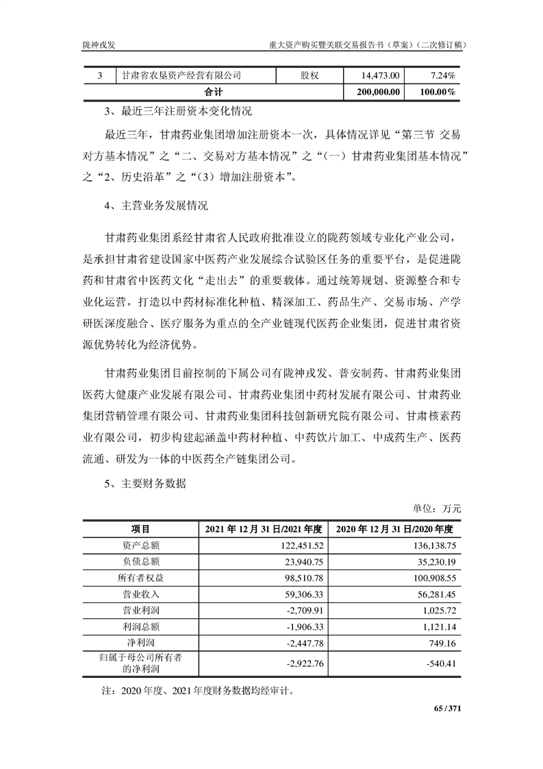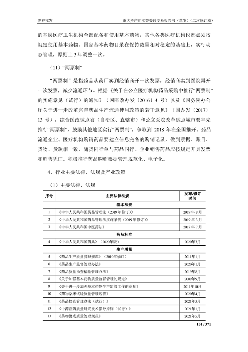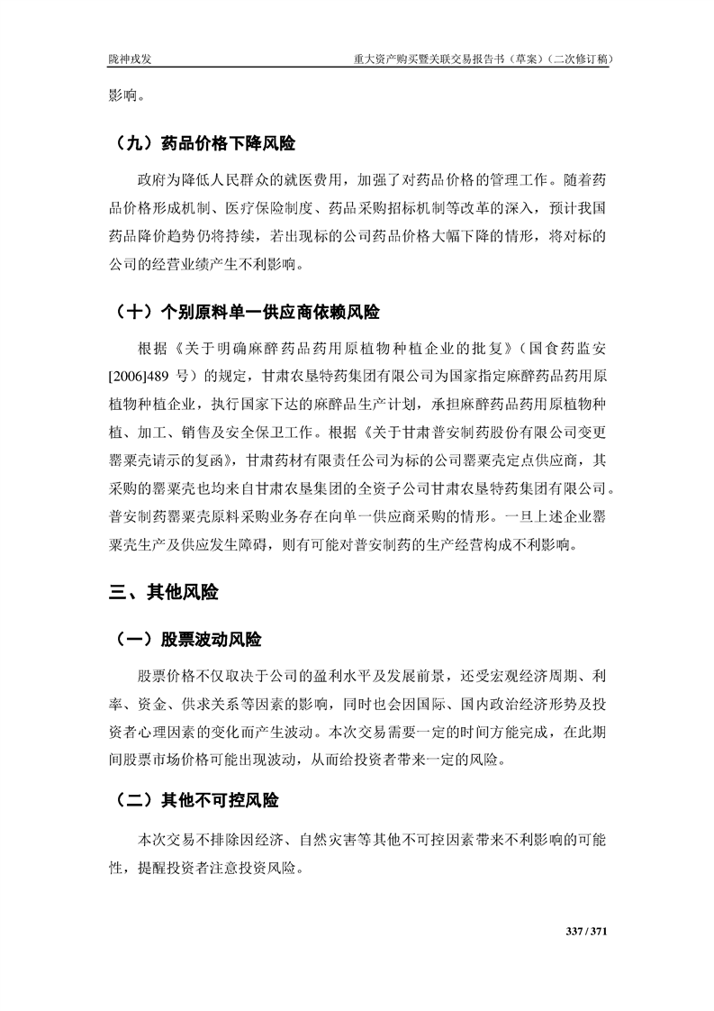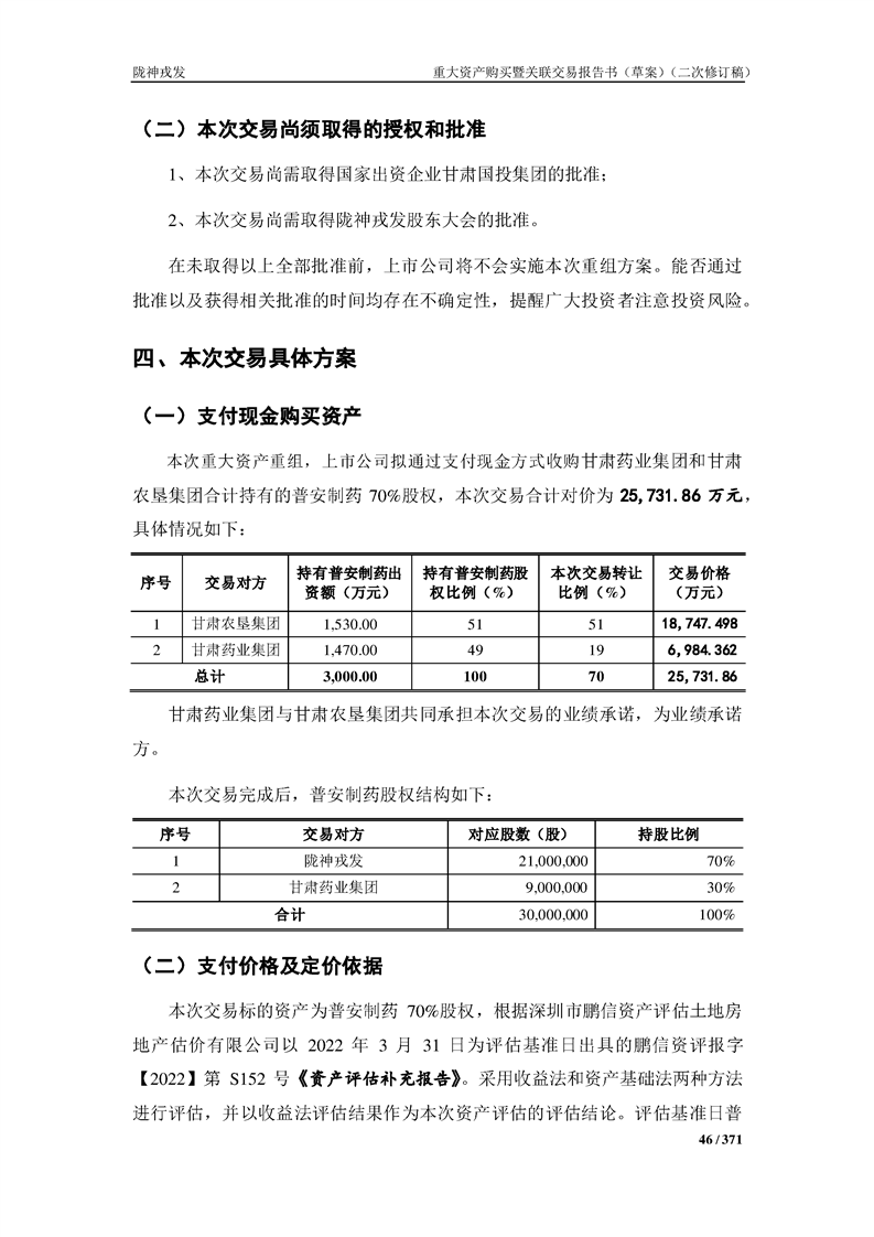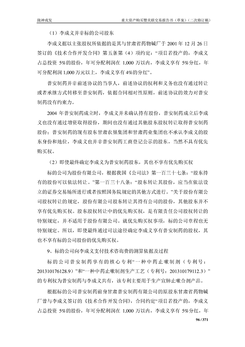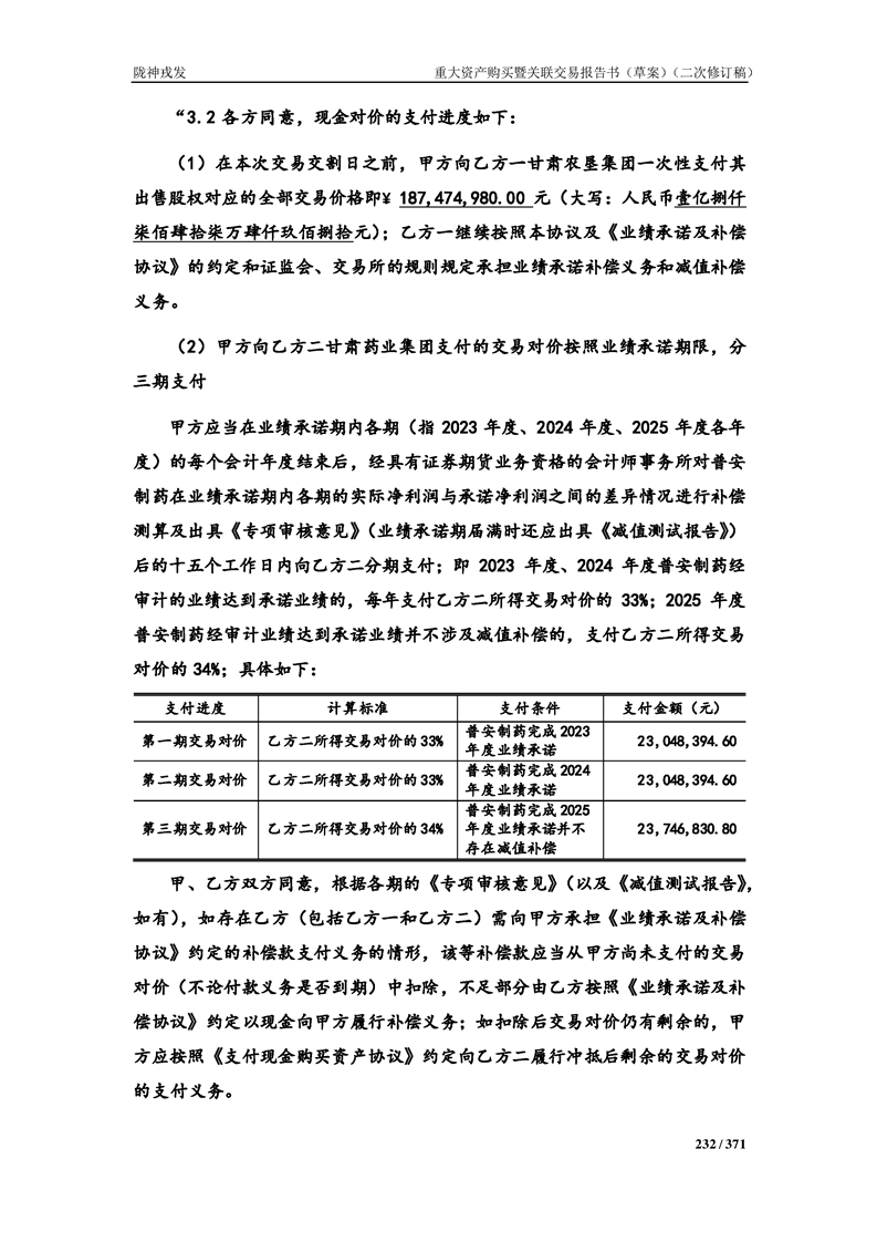 甘肅隴神戎發(fā)藥業(yè)股份有限公司重大資產(chǎn)購買暨關聯(lián)交易報告書(草案)摘要(二次修訂稿)