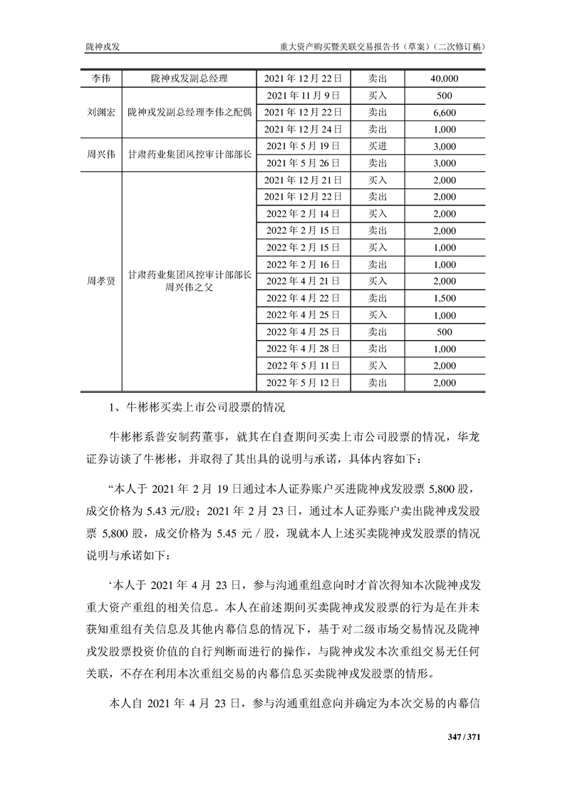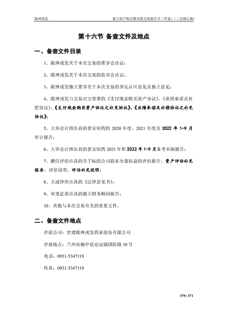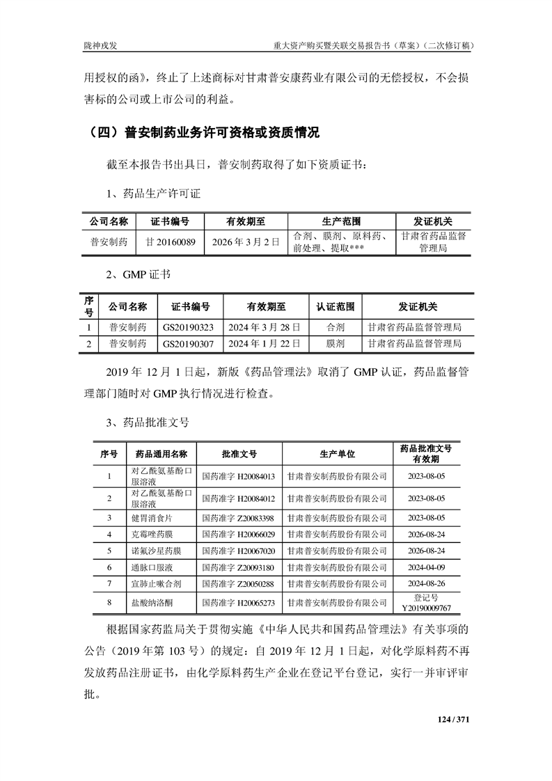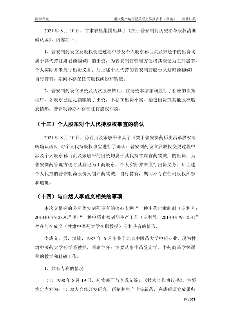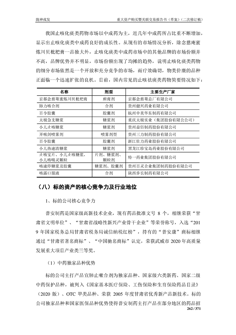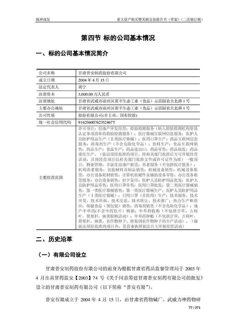 甘肅隴神戎發(fā)藥業(yè)股份有限公司重大資產(chǎn)購買暨關聯(lián)交易報告書(草案)摘要(二次修訂稿)