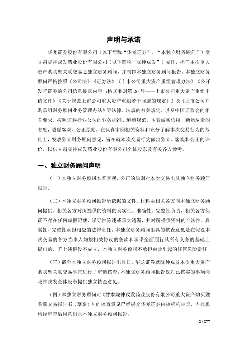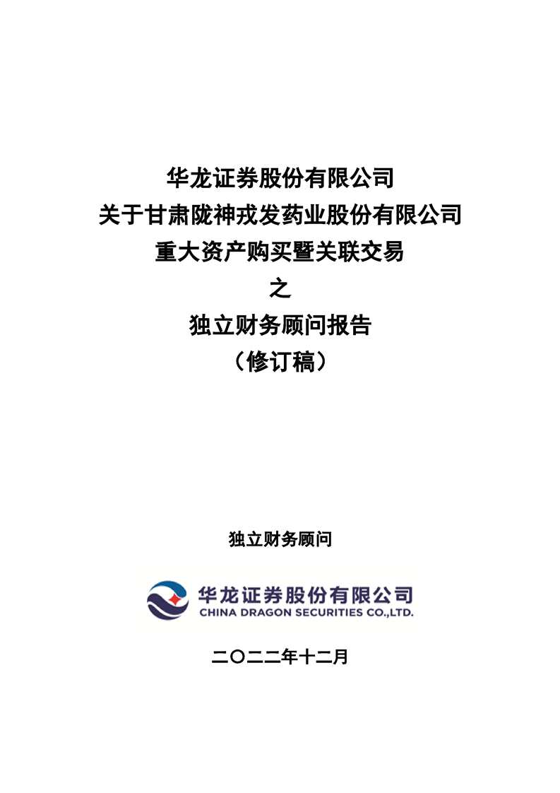 華龍證券股份有限公司關(guān)于甘肅隴神戎發(fā)藥業(yè)股份有限公司重大資產(chǎn)購買暨關(guān)聯(lián)交易之獨(dú)立財務(wù)顧問報告(二次修訂稿)