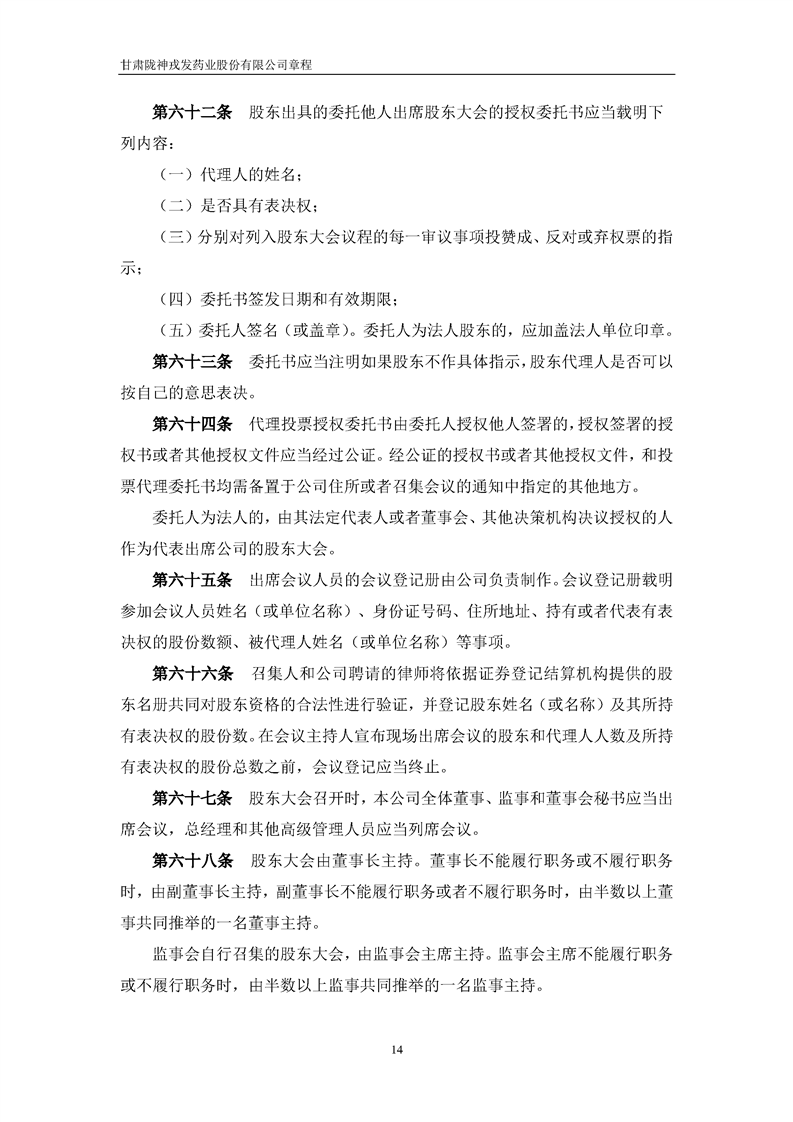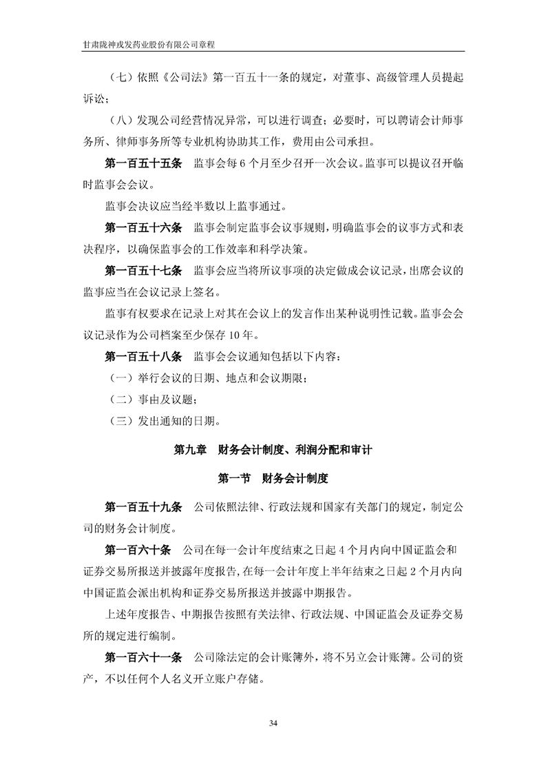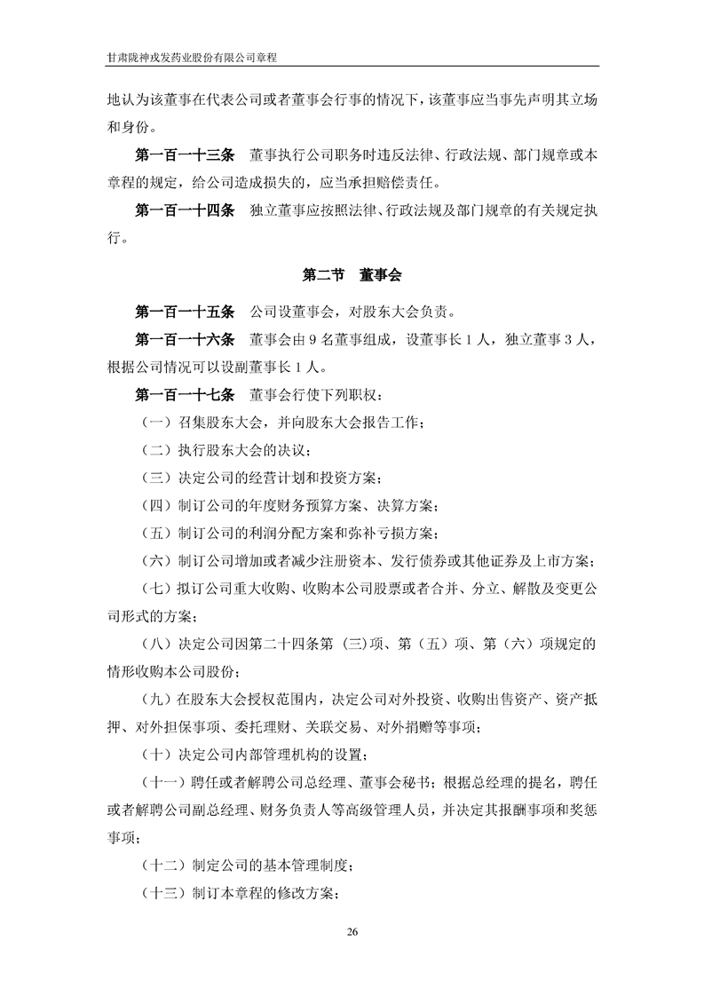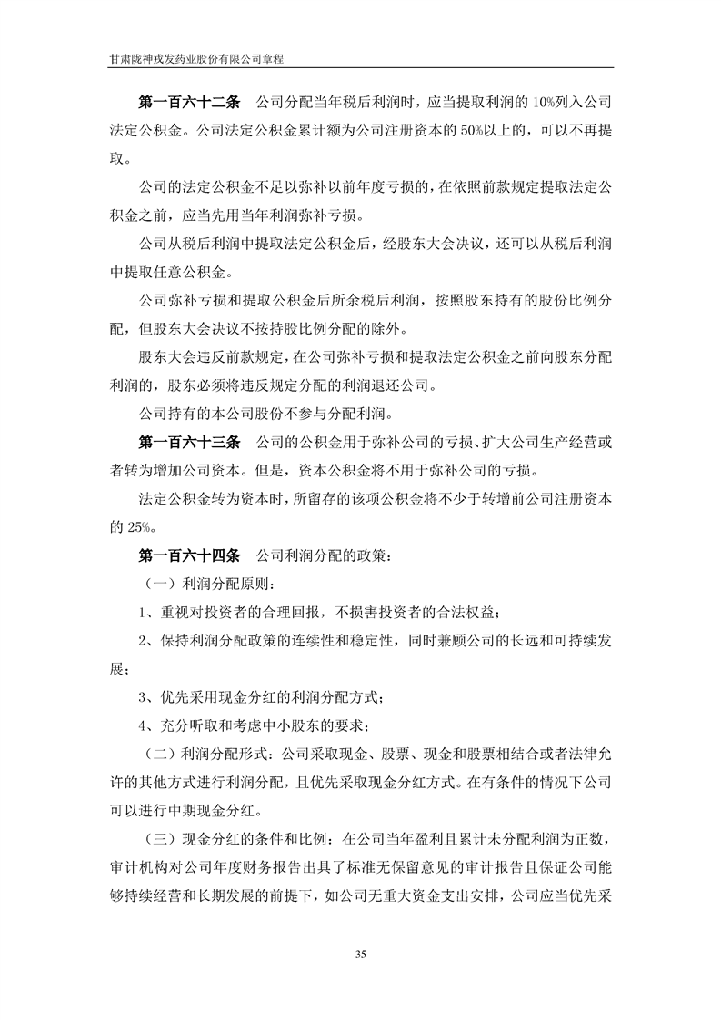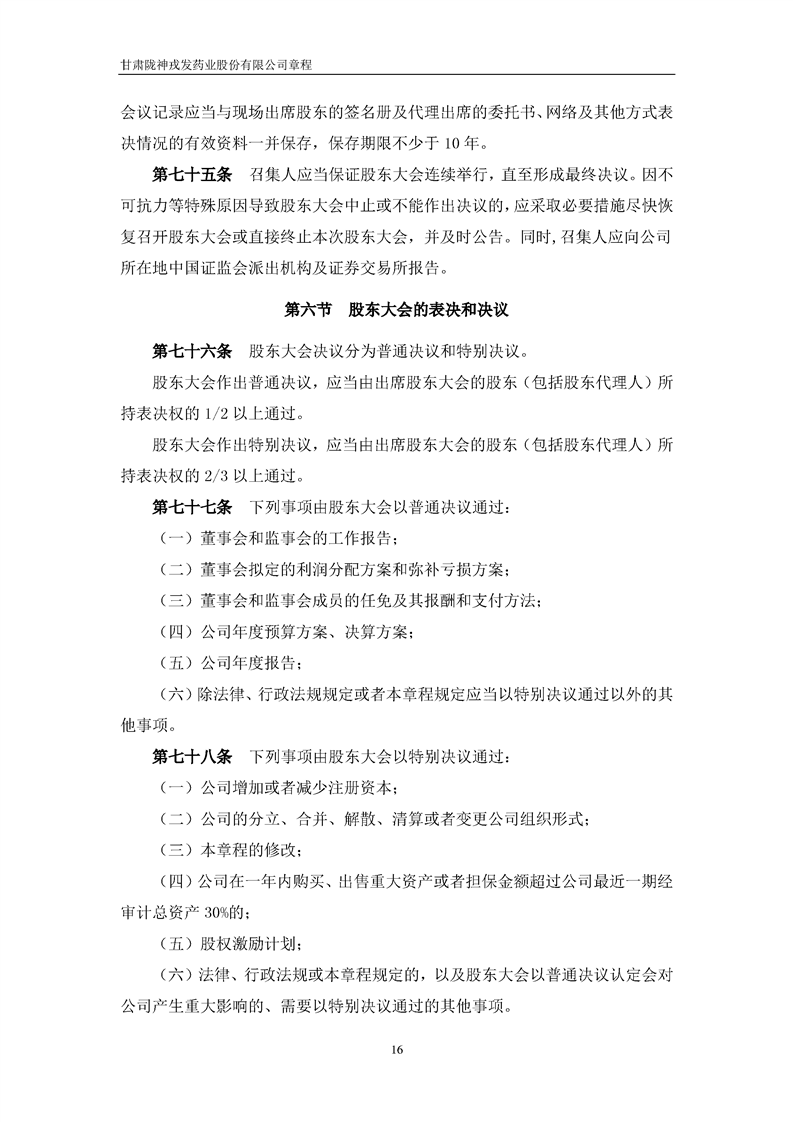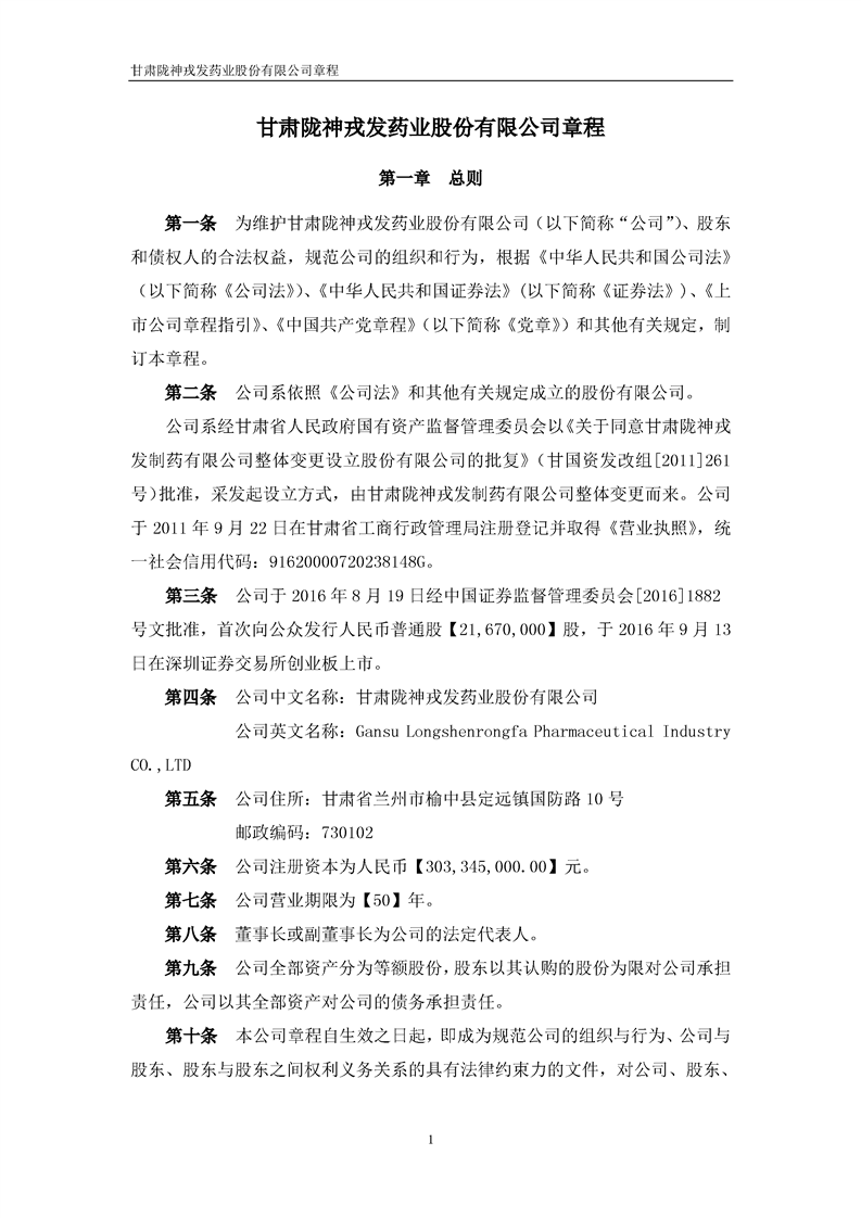 甘肅隴神戎發(fā)藥業(yè)股份有限公司章程(2022年4月)