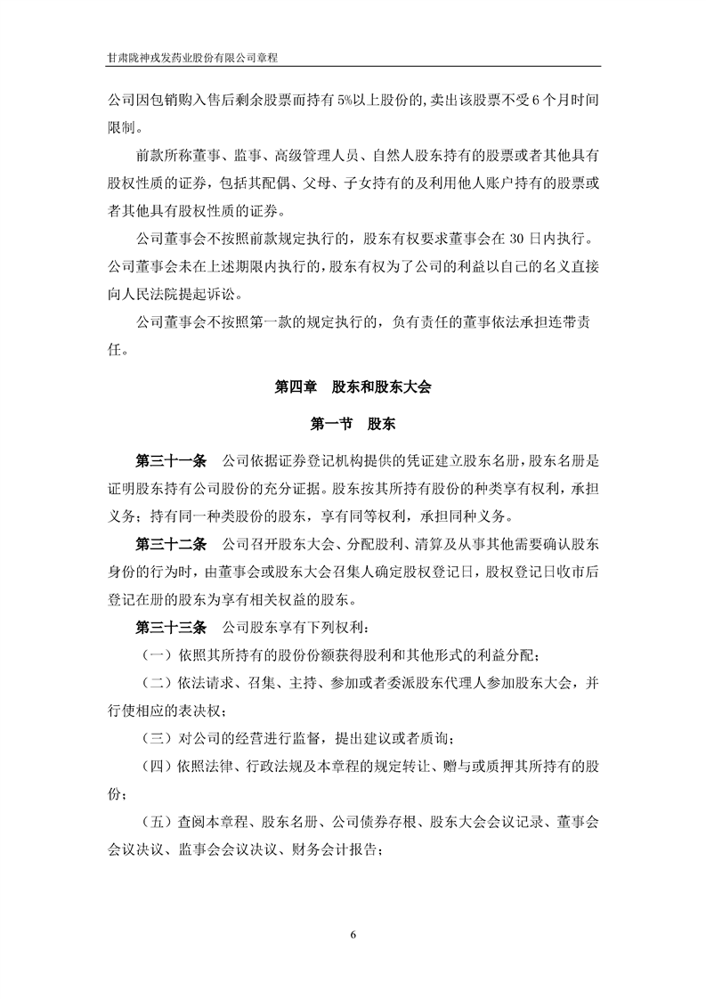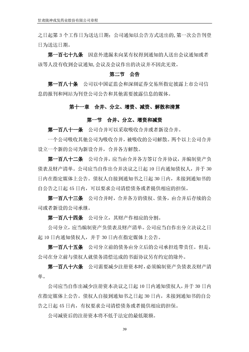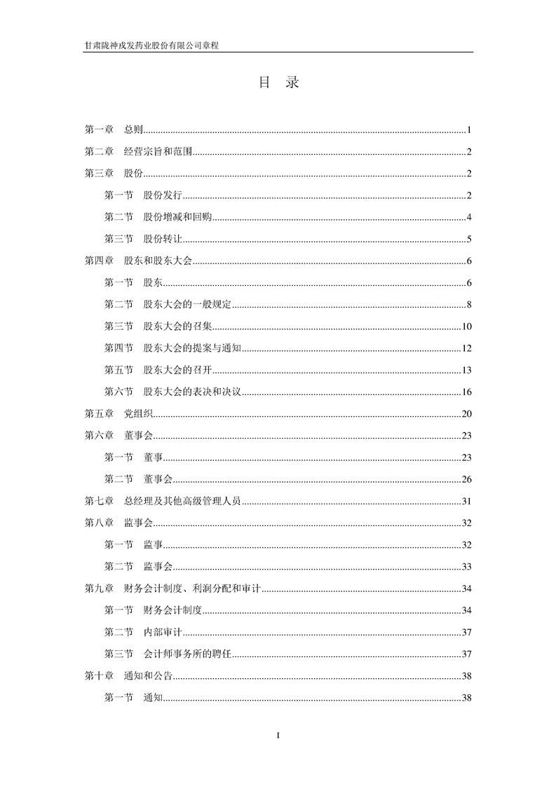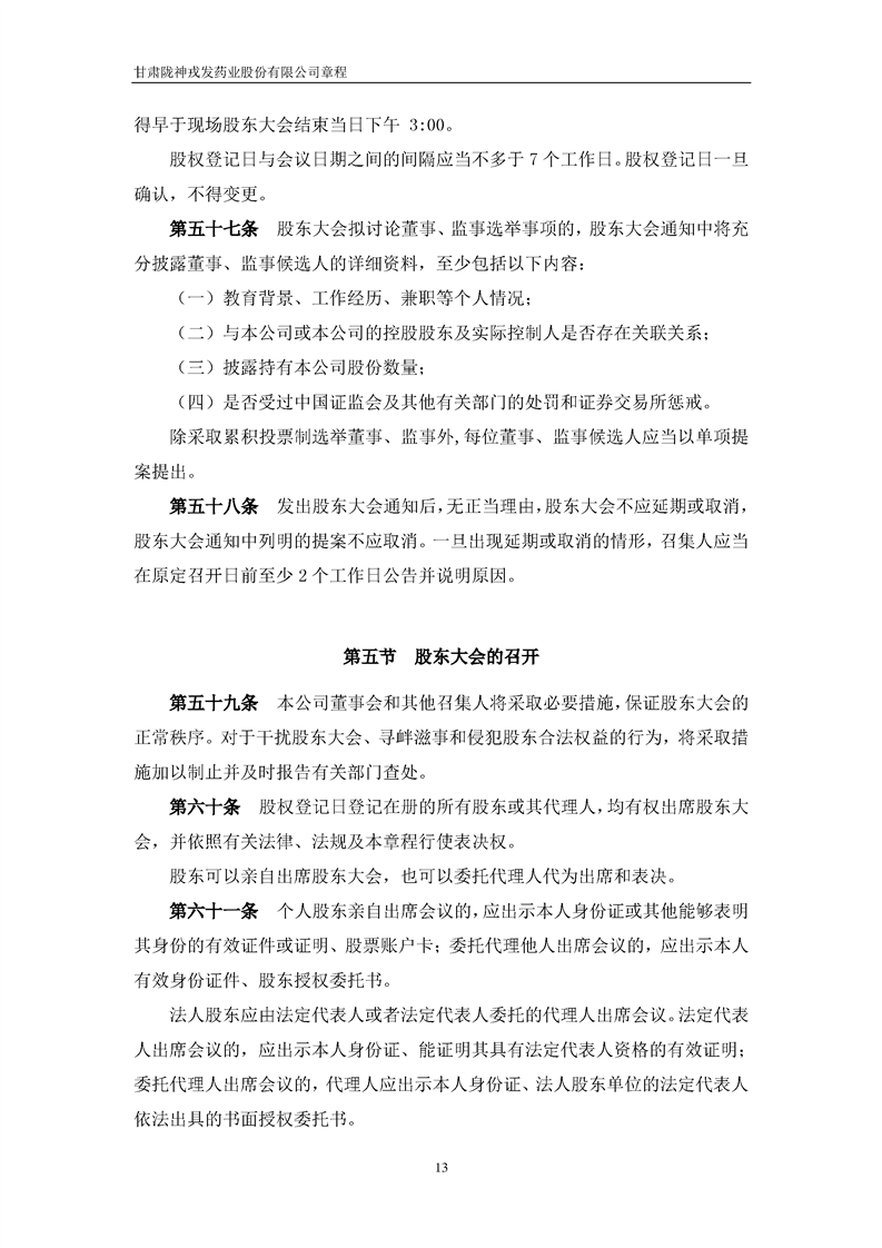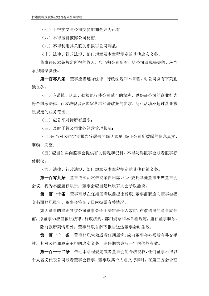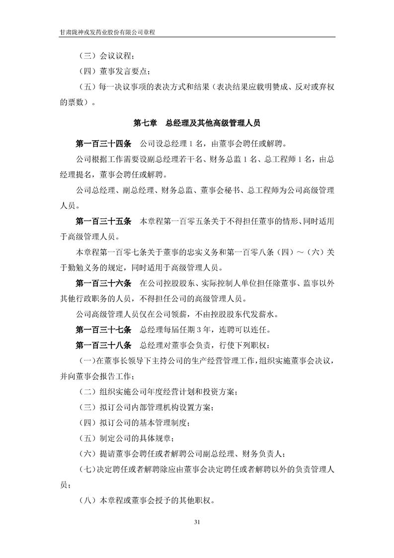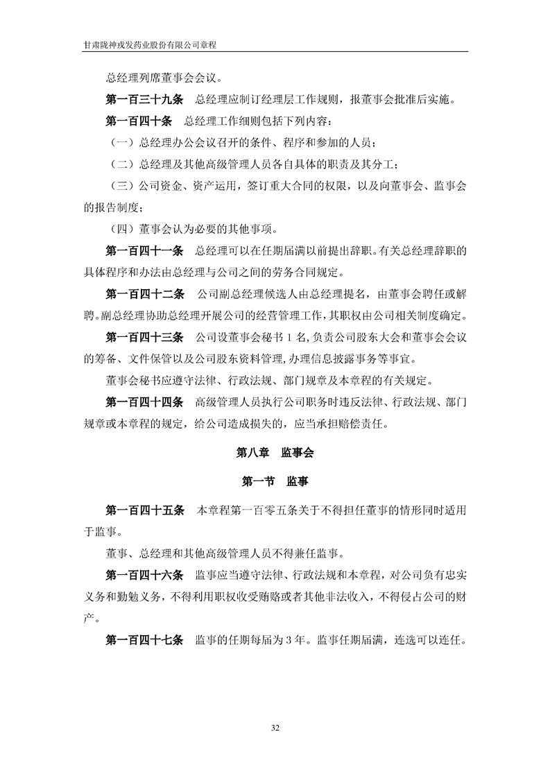 甘肅隴神戎發(fā)藥業(yè)股份有限公司章程(2022年4月)