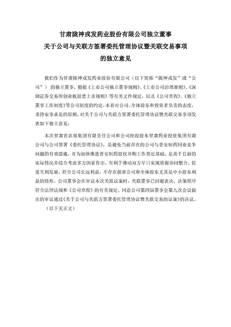 獨立董事關于公司與關聯(lián)方簽署委托管理協(xié)議暨關聯(lián)交易事項的獨立意見