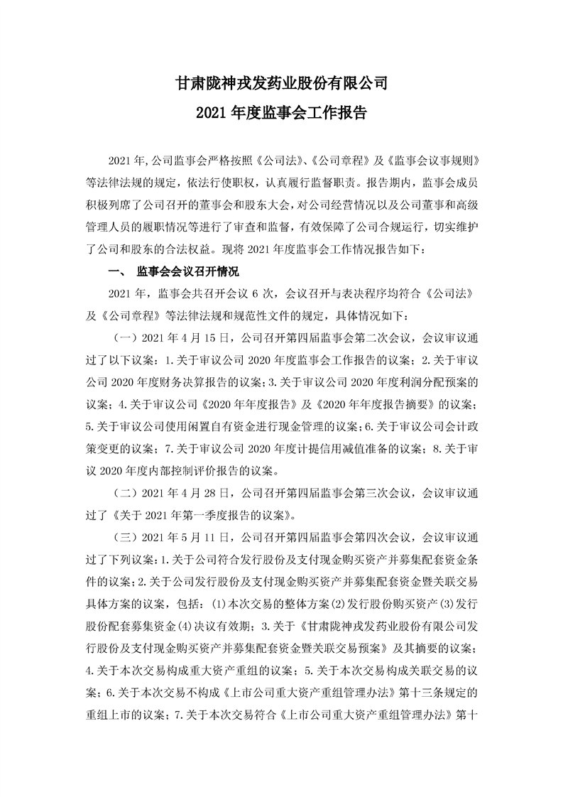 2021年度監(jiān)事會(huì)工作報(bào)告