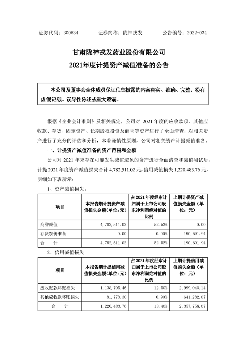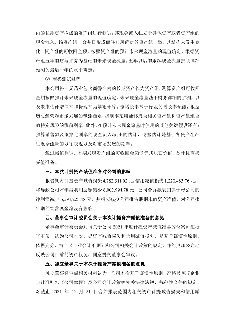 關(guān)于公司2021年度計(jì)提資產(chǎn)減值準(zhǔn)備的公告