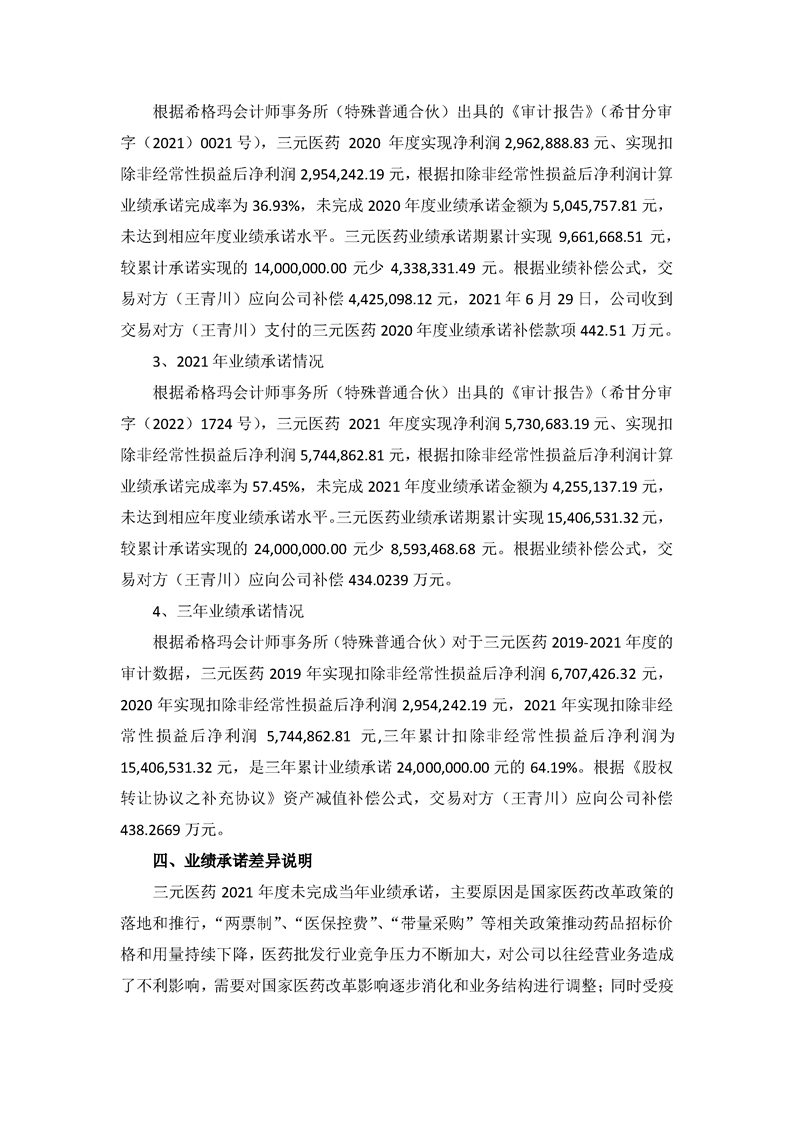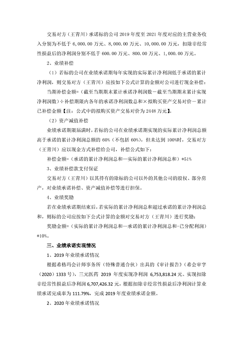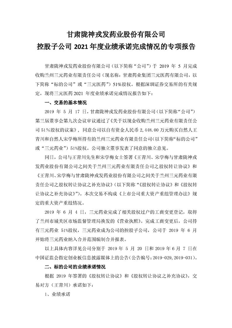 控股子公司2021年度業(yè)績承諾完成情況的專項報告