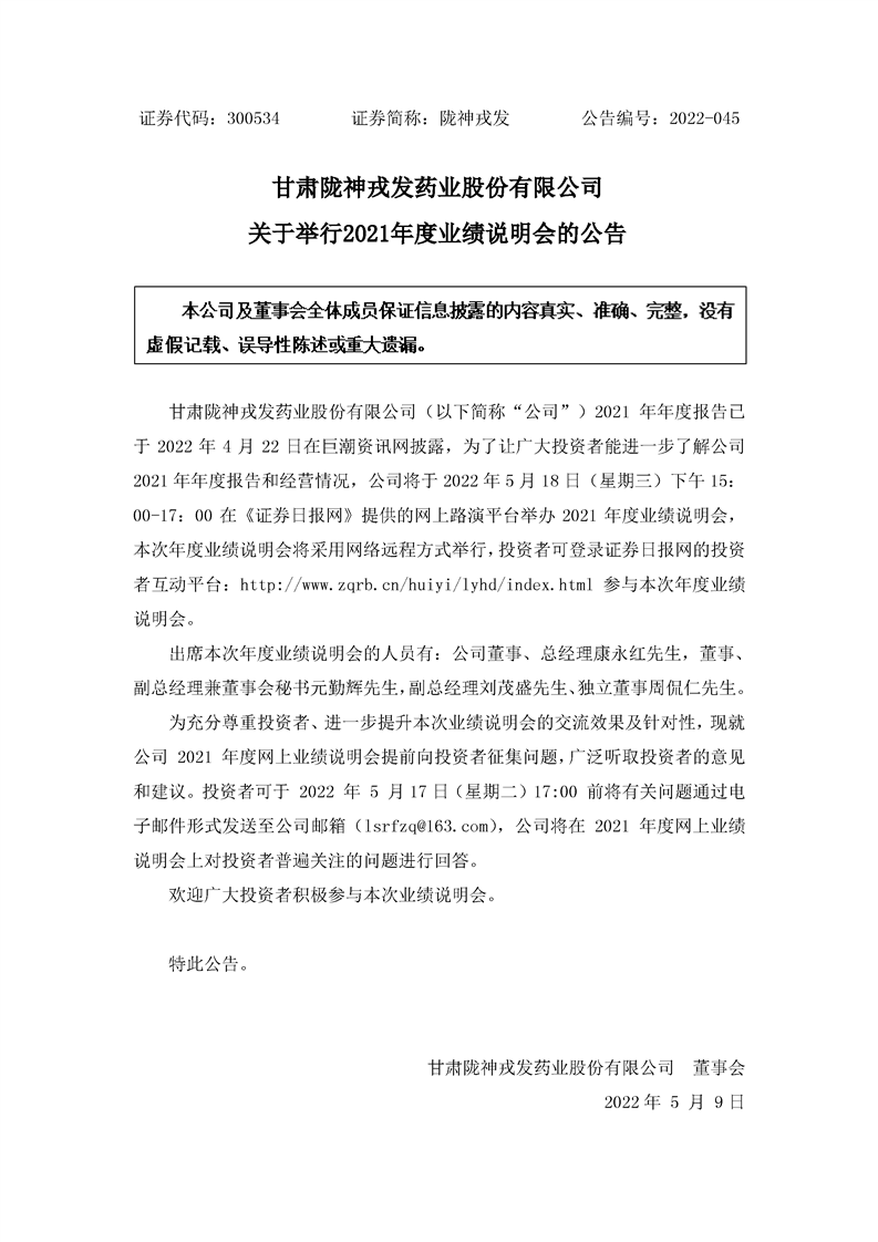 關(guān)于舉行2021年度業(yè)績說明會(huì)的公告