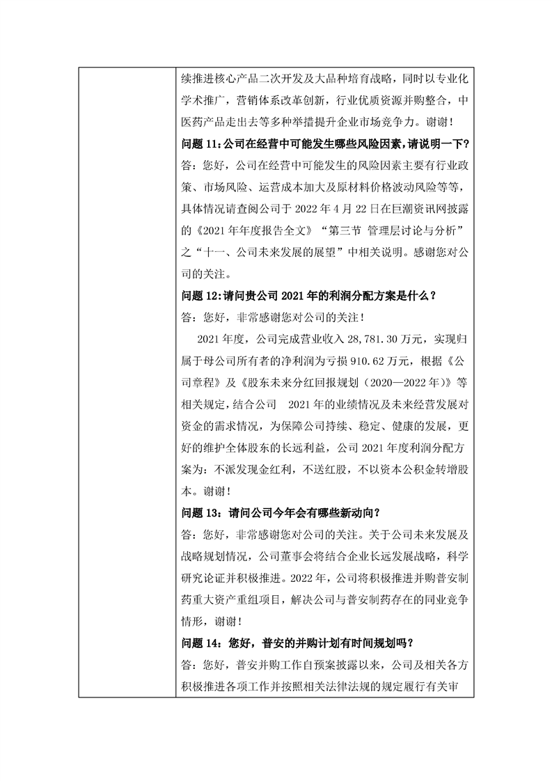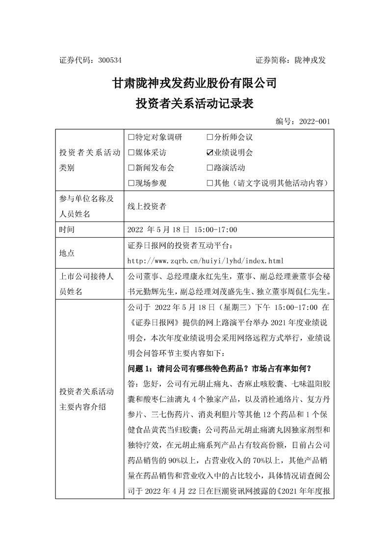 2021年度業(yè)績說明會投資者關(guān)系活動記錄表