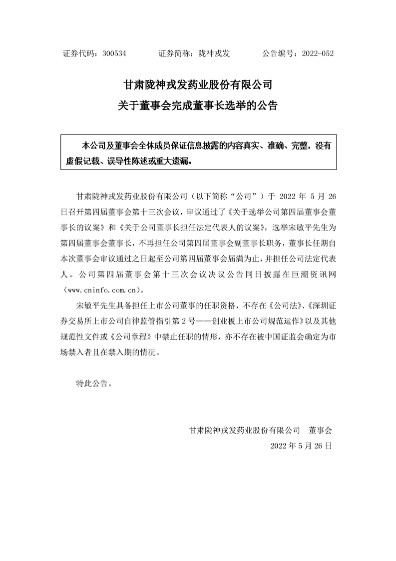 關(guān)于董事會(huì)完成董事長(zhǎng)選舉的公告