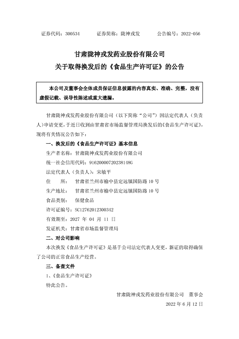 關(guān)于取得換發(fā)后的《食品生產(chǎn)許可證》的公告