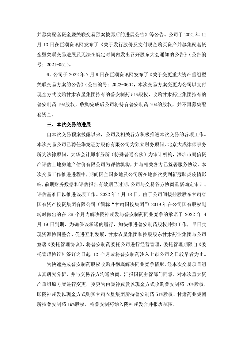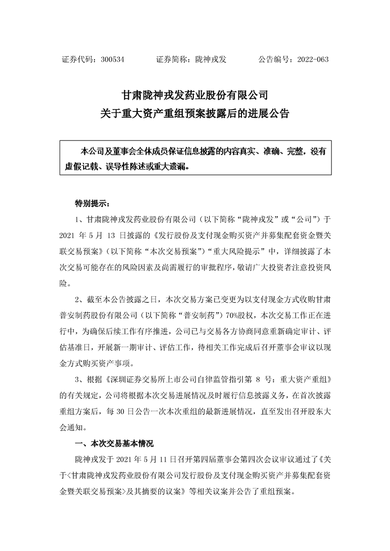 關(guān)于重大資產(chǎn)重組預(yù)案披露后的進展公告