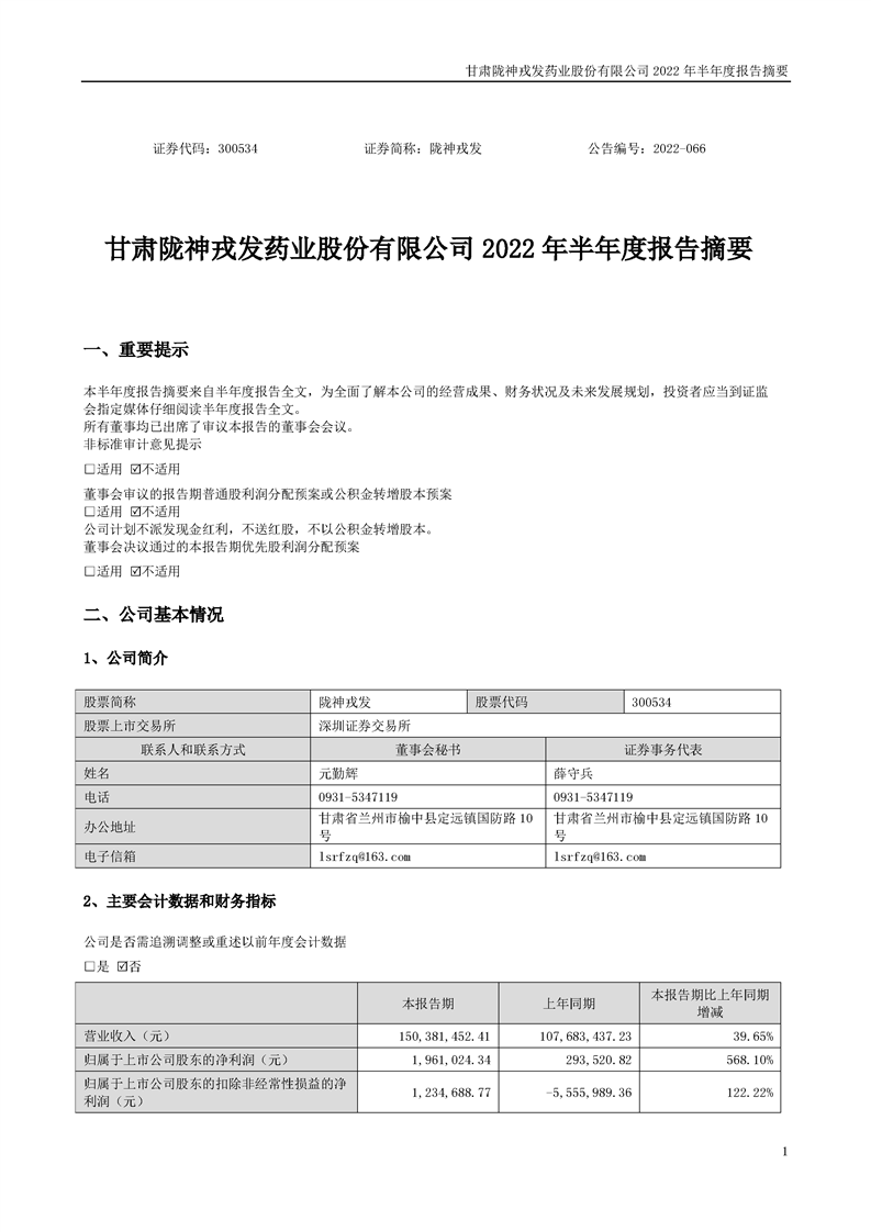2022年半年度報告摘要
