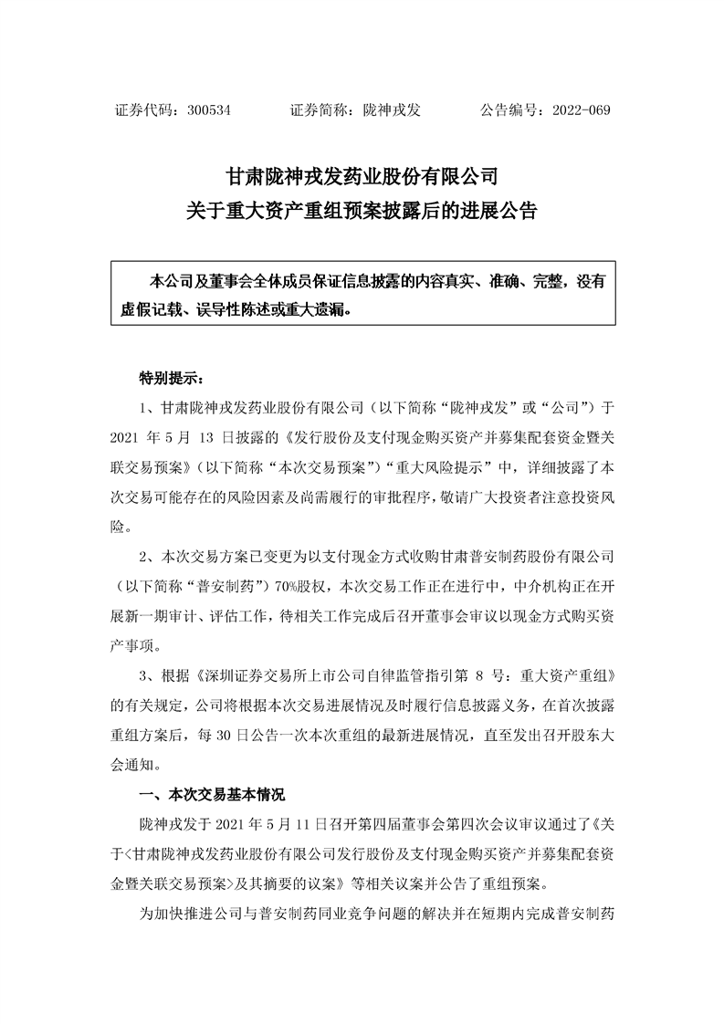 關(guān)于重大資產(chǎn)重組預(yù)案披露后的進展公告