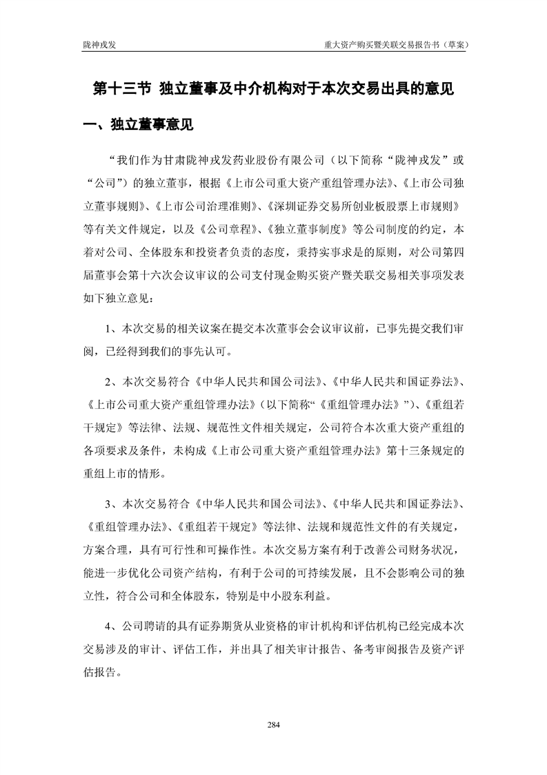 甘肅隴神戎發(fā)藥業(yè)股份有限公司重大資產(chǎn)購買暨關(guān)聯(lián)交易報(bào)告書(草案)