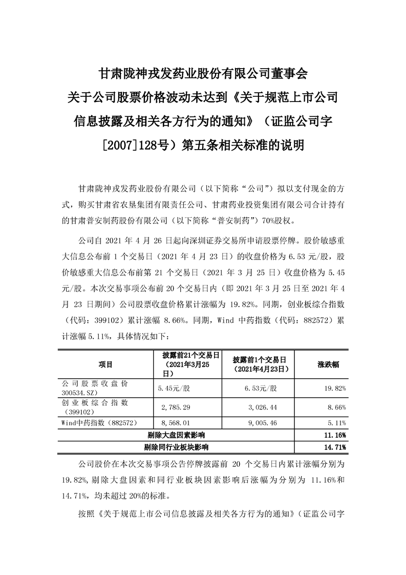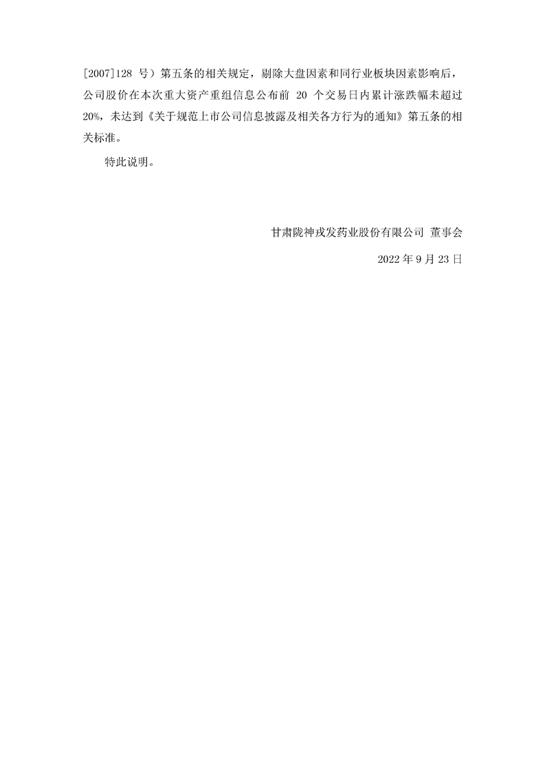 董事會(huì)關(guān)于公司股票價(jià)格波動(dòng)未達(dá)到《關(guān)于規(guī)范上市公司信息披露及相關(guān)各方行為的通知》(證監(jiān)公司字[2007]128號(hào))第五條相關(guān)標(biāo)準(zhǔn)的說(shuō)明