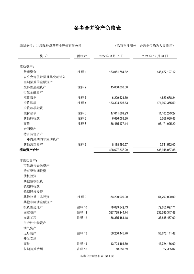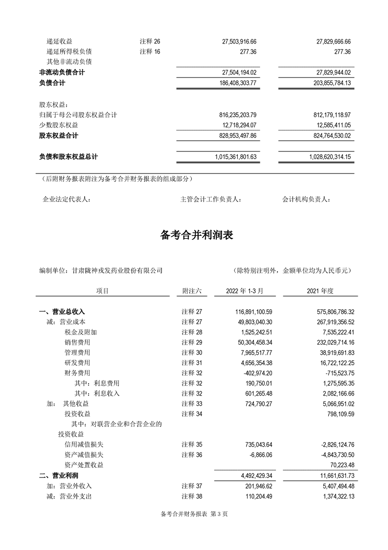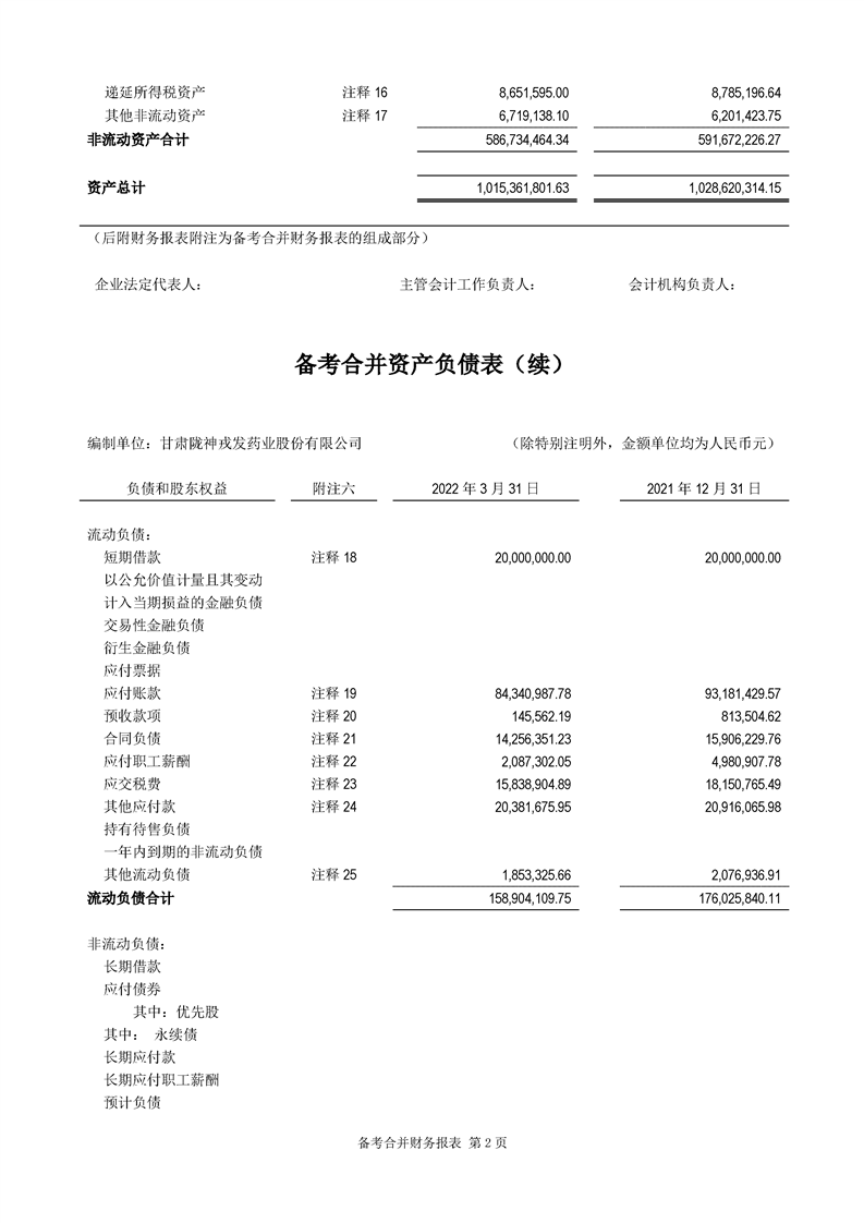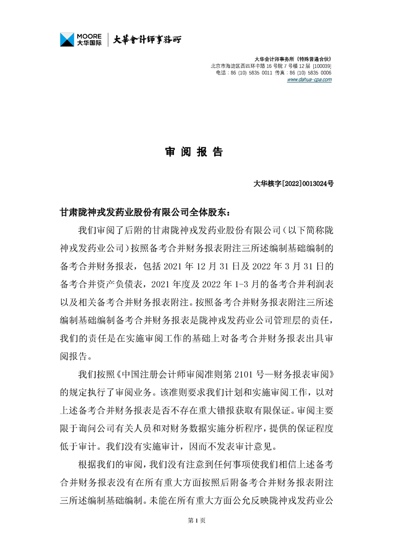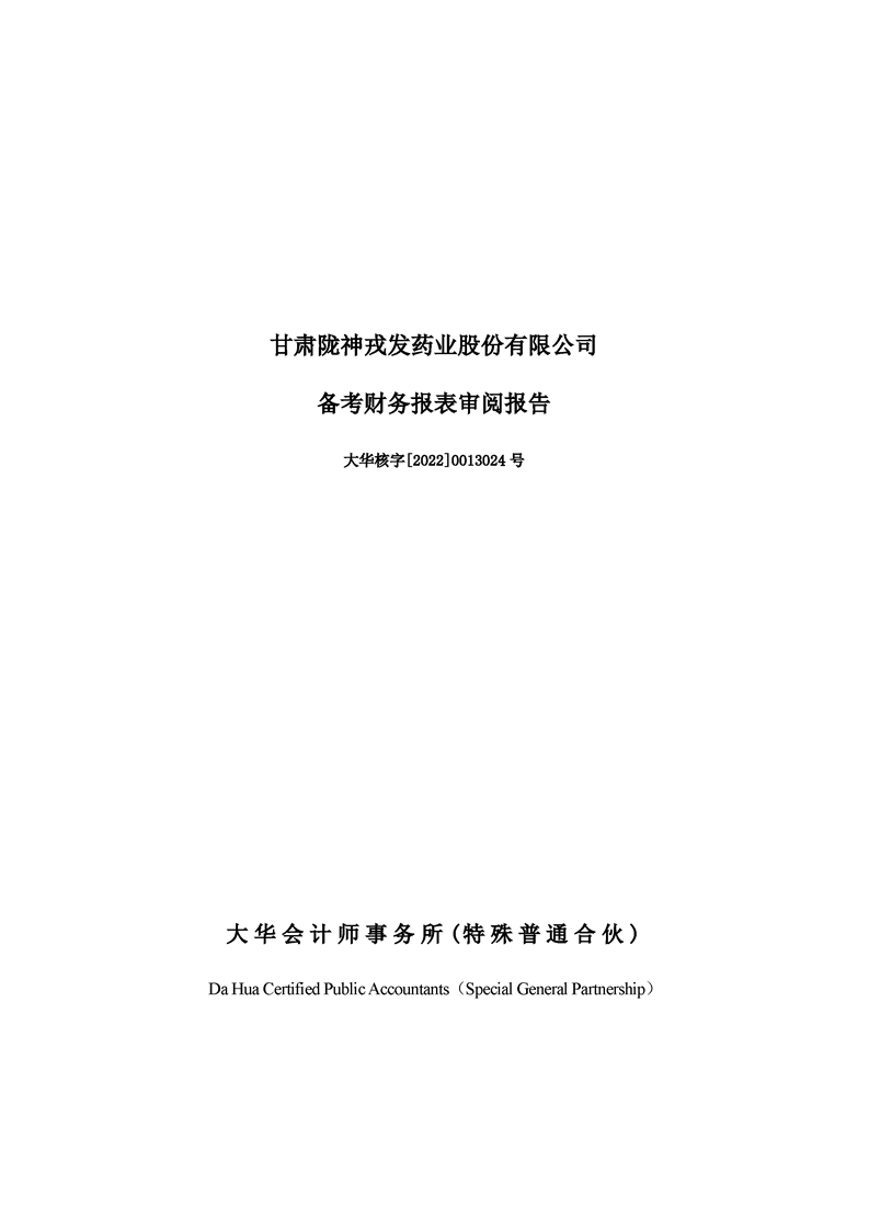 甘肅隴神戎發(fā)藥業(yè)股份有限公司備考財務(wù)報表審閱報告