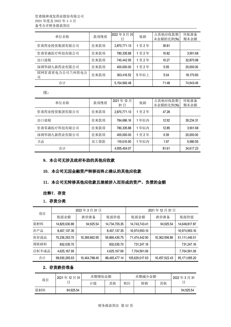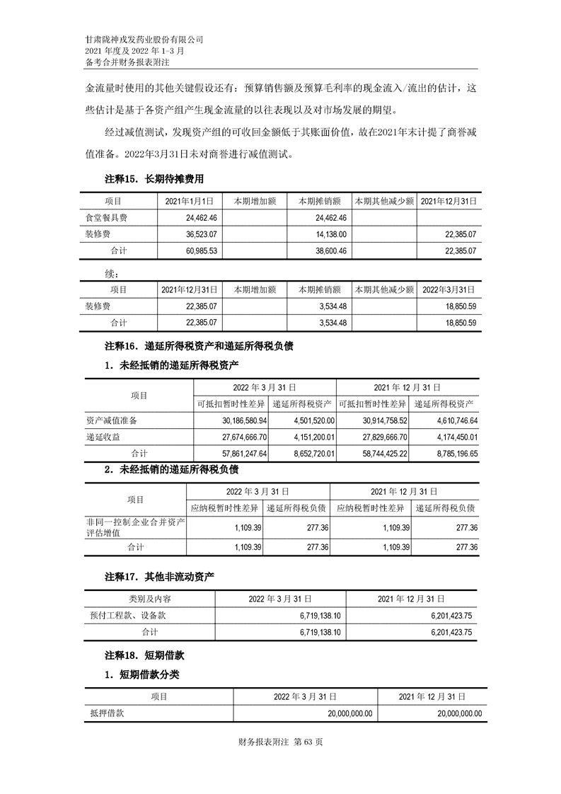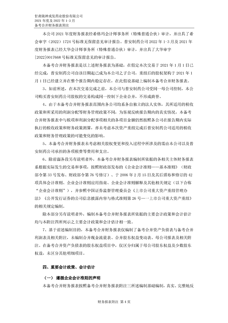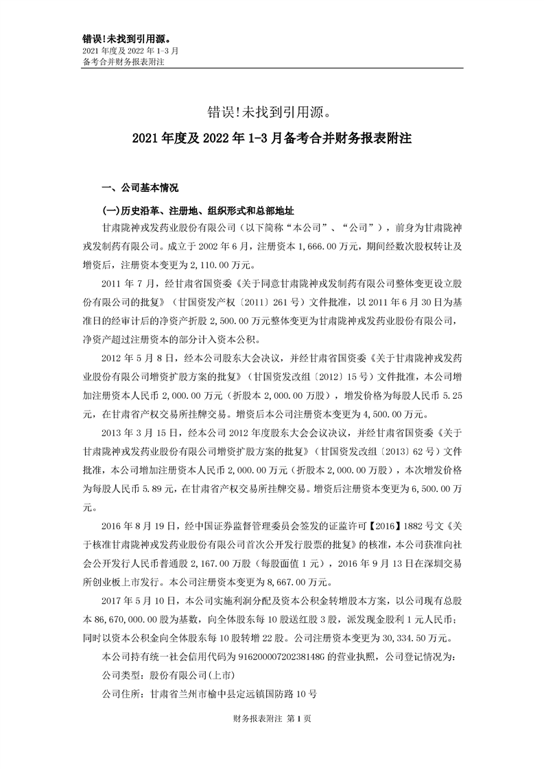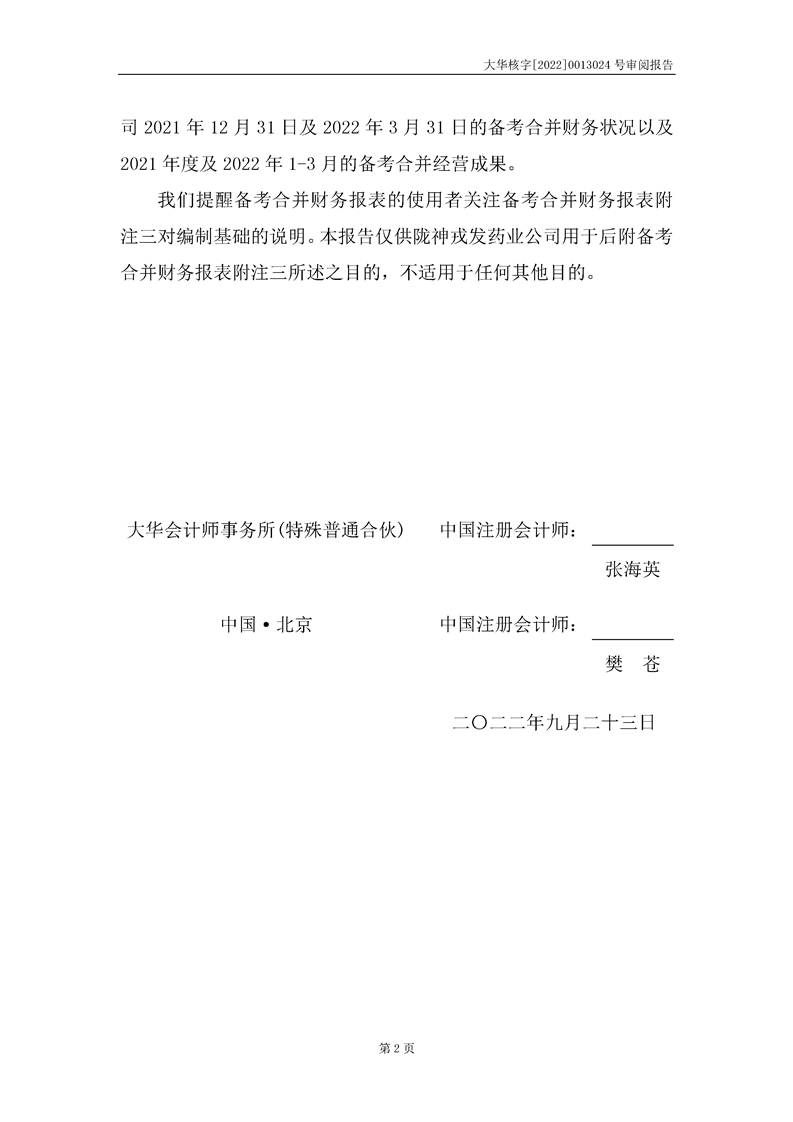 甘肅隴神戎發(fā)藥業(yè)股份有限公司備考財務(wù)報表審閱報告