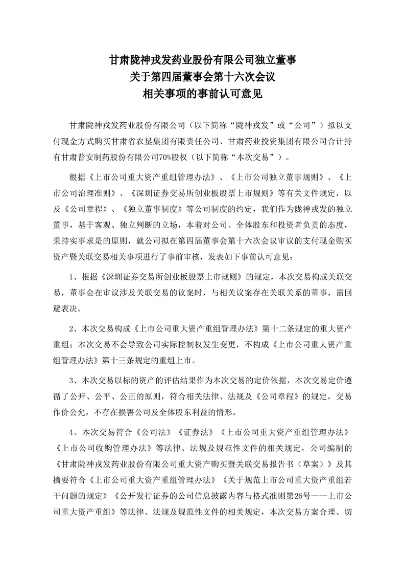 獨(dú)立董事關(guān)于第四屆董事會(huì)第十六次會(huì)議相關(guān)事項(xiàng)的事前認(rèn)可的意見