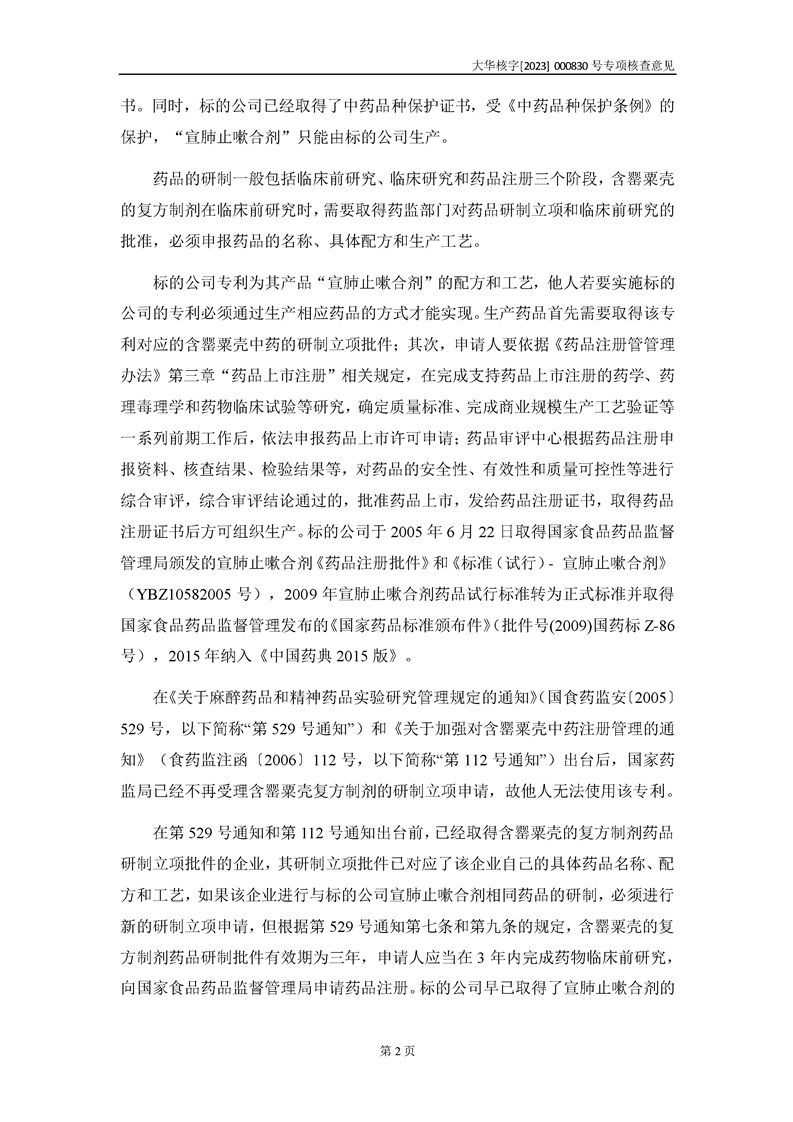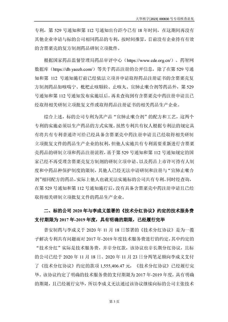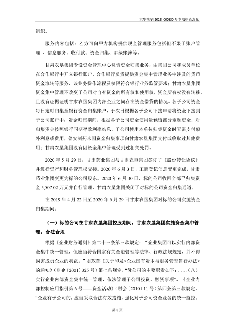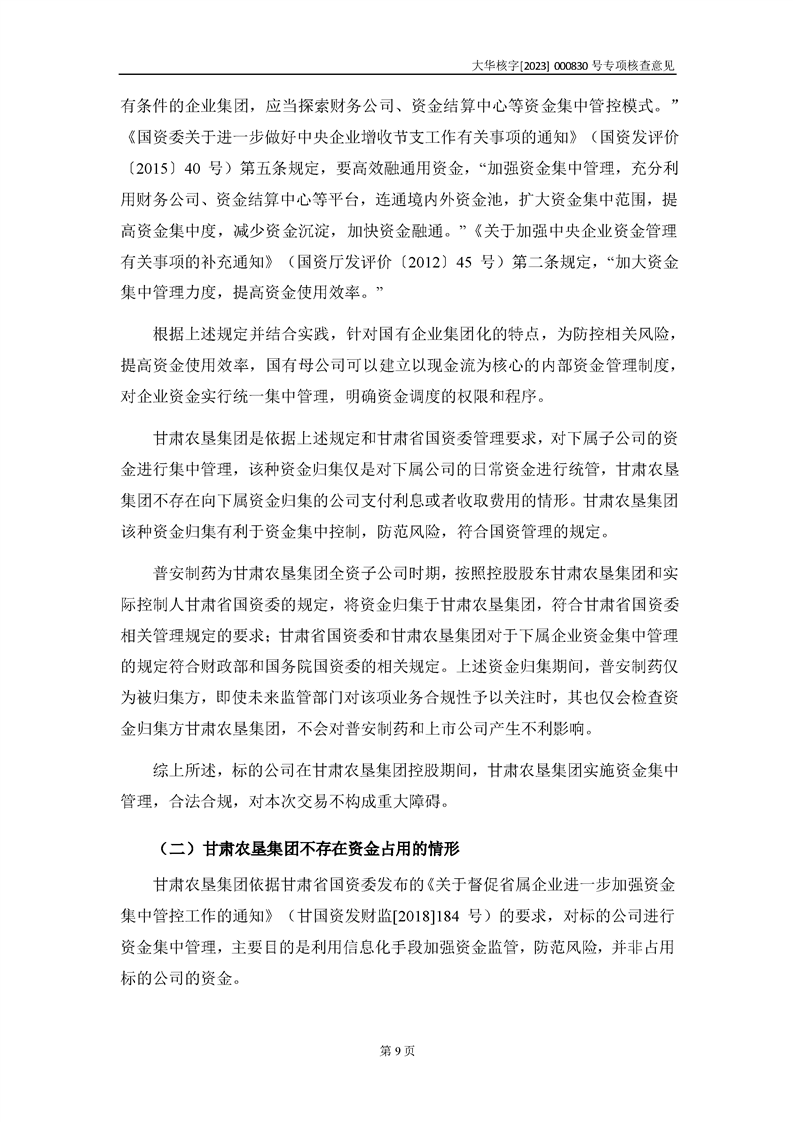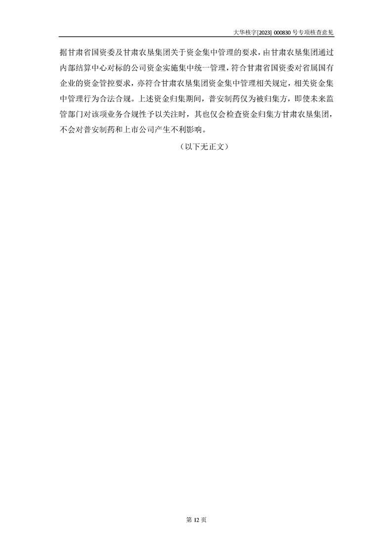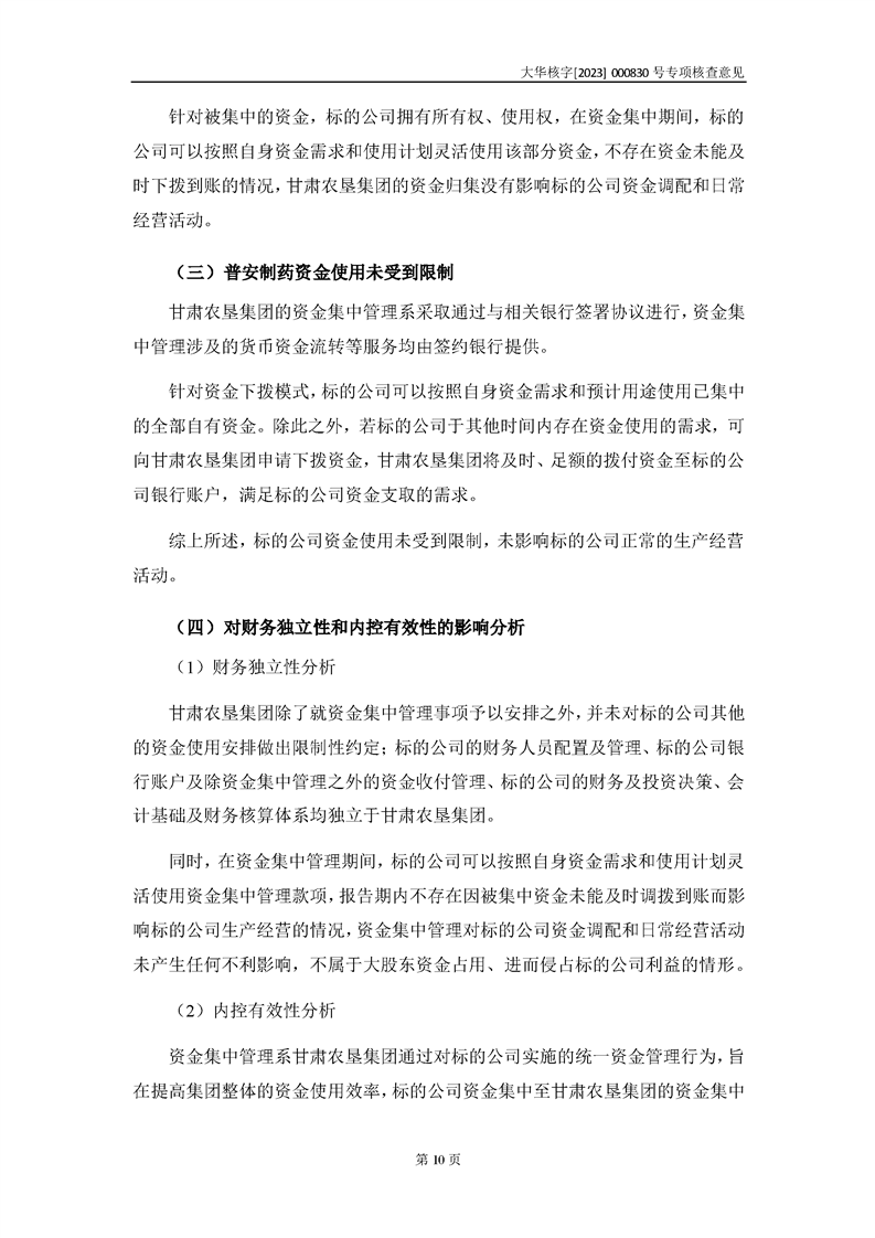 大華會計師事務(wù)所關(guān)于甘肅隴神戎發(fā)藥業(yè)股份有限公司重大資產(chǎn)購買暨關(guān)聯(lián)交易相關(guān)問題補(bǔ)充說明的專項核查意見--大華核字[2023]000830號